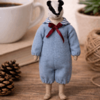 Кот Арчи — интерьерная авторская игрушка ручной работы из серии «Крохотные истории». Каждый Арчи создаётся в единственном экземпляре, с вниманием к фактуре тканей, посадке одежды и настроению образа.