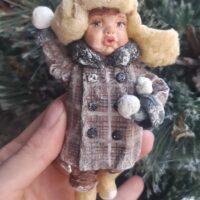 Ватная игрушка "Мальчик со снежками" Интерьерная декоративная игрушка, елочное украшение