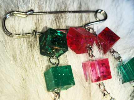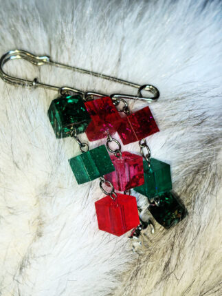 Представляю вам совершенно особенный аксессуар, в котором строгая геометрия встречается с природной магией. Эта акцентная брошь-булавка с парящими кубиками и миниатюрным олененком словно рассказывает сказку о тайных лесных тропах.