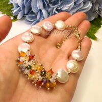 4000,00 ₽Браслет и серьги из барочного жемчуга с цирконами. Браслет на запястье 16-17 см + 3 см цепочка удлиняющая. Можно по отдельности.