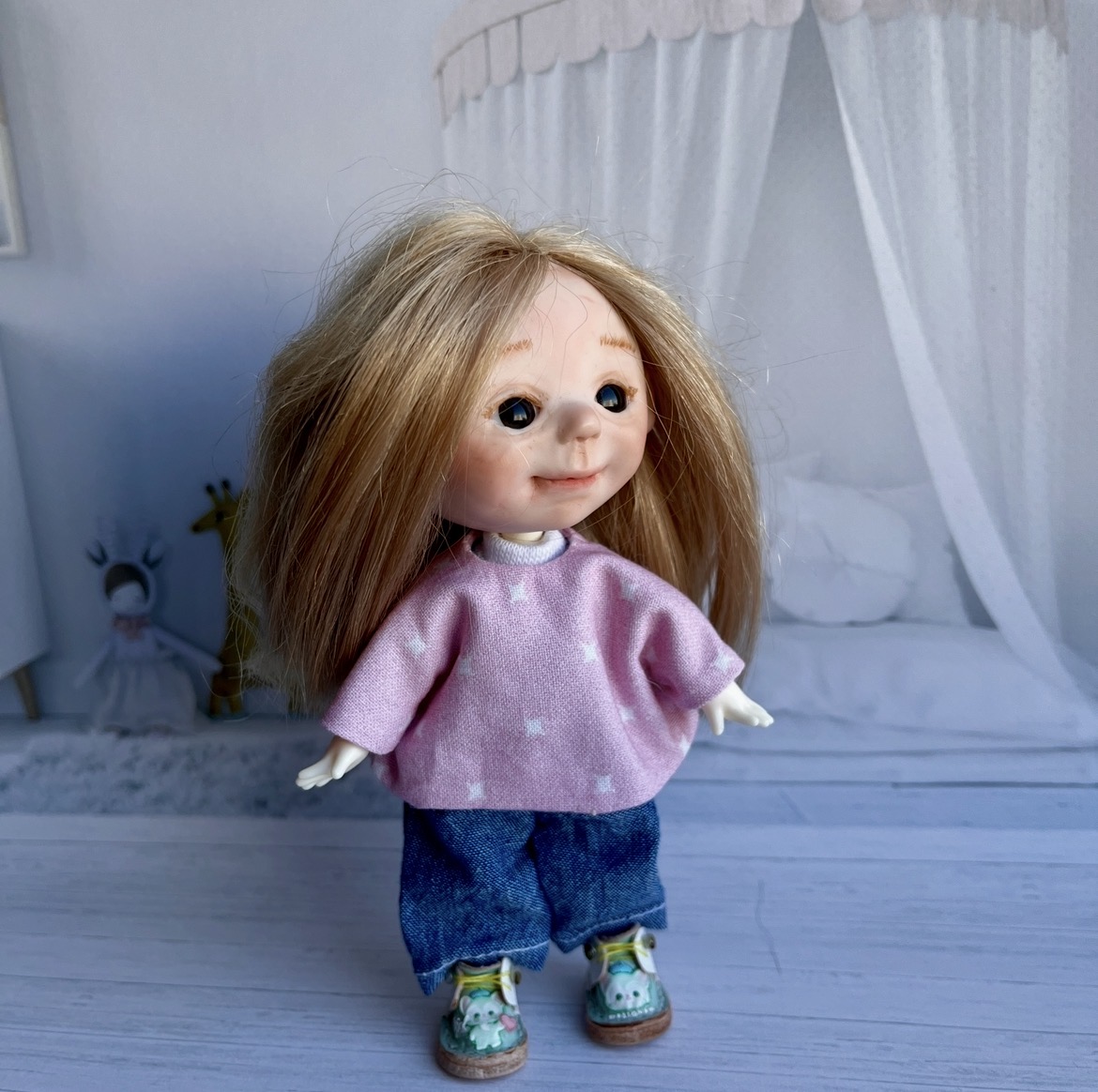 Шарнирная кукла Obitsu 11 с авторской лепной головой. Уникальная коллекционная миниатюра, сочетающая японское качество артикуляции и тепло ручной работы. Идеальна для фотосессий, стилизации и пополнения личной коллекции.