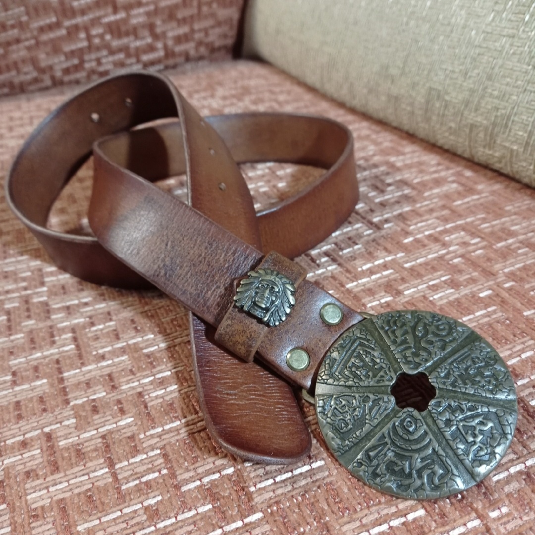 Винтажный женский ремень с  интересной редкой бляхой в стиле наскальной живописи.
