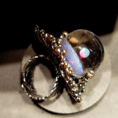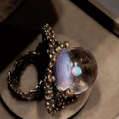 Авторское вечернее кольцо Корона Вселенной, лэмпворк, опал