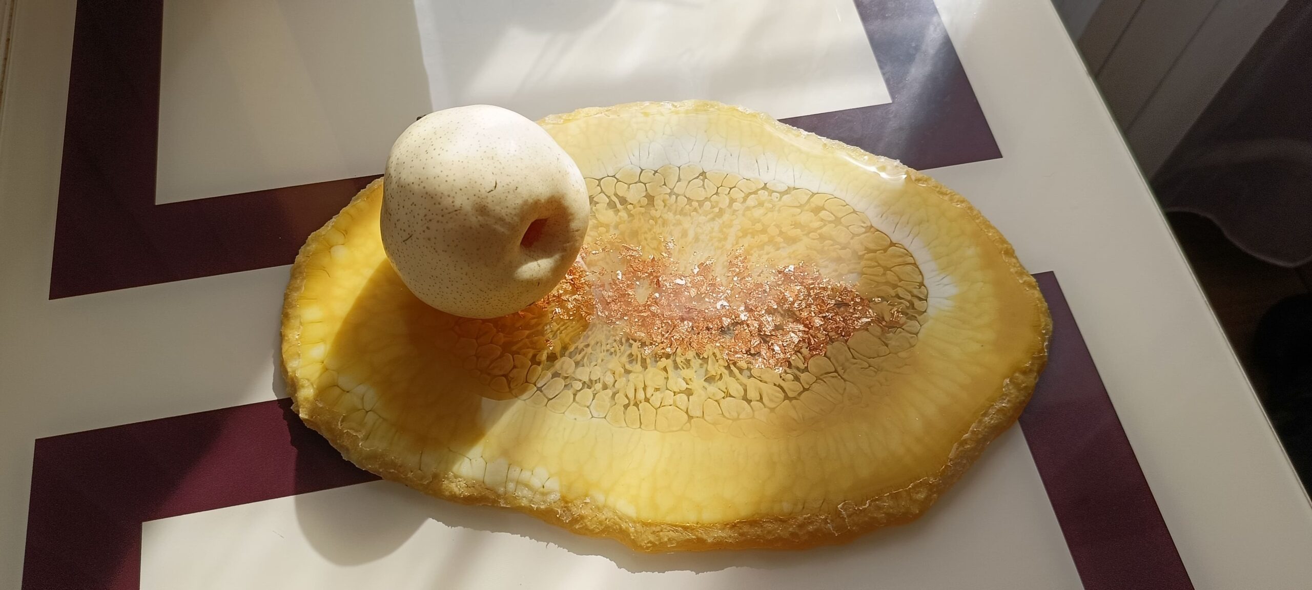 Эпоксидная смола / живой край / сочный жёлтый цвет, как у спелой дыни / золотая поталь в центре