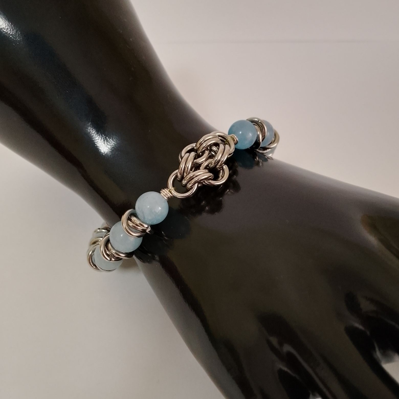 Отдельное внимание заслуживает цветовое сочетание аквамарина и стали. Браслет один, повторов нет.