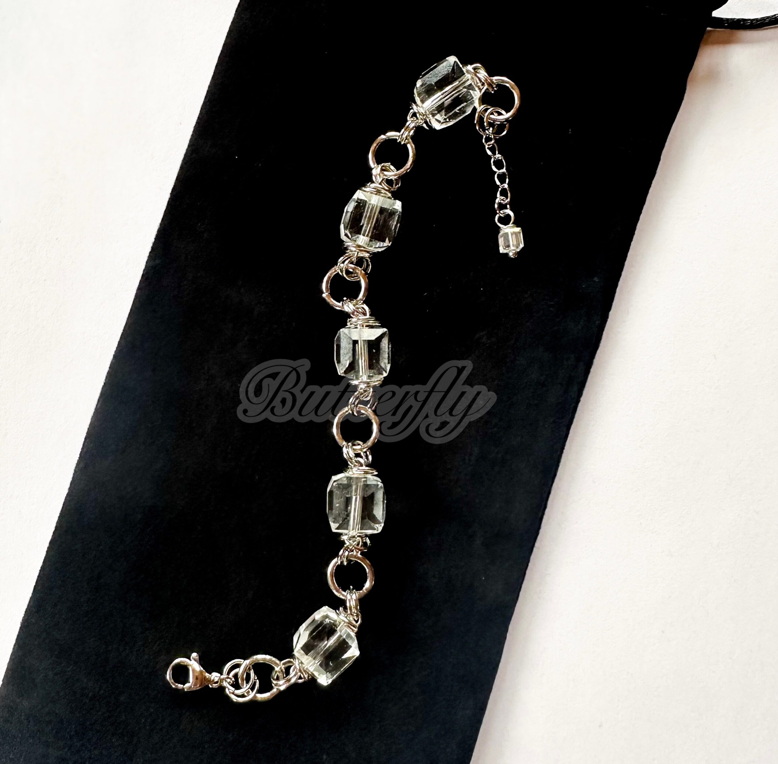 Браслет из бусин ювелирного стекла в форме кубиков. Качественная фурнитура с родиевый покрытием. Браслет на запястье 16-17 см+3 см цепочка удлиняющая.