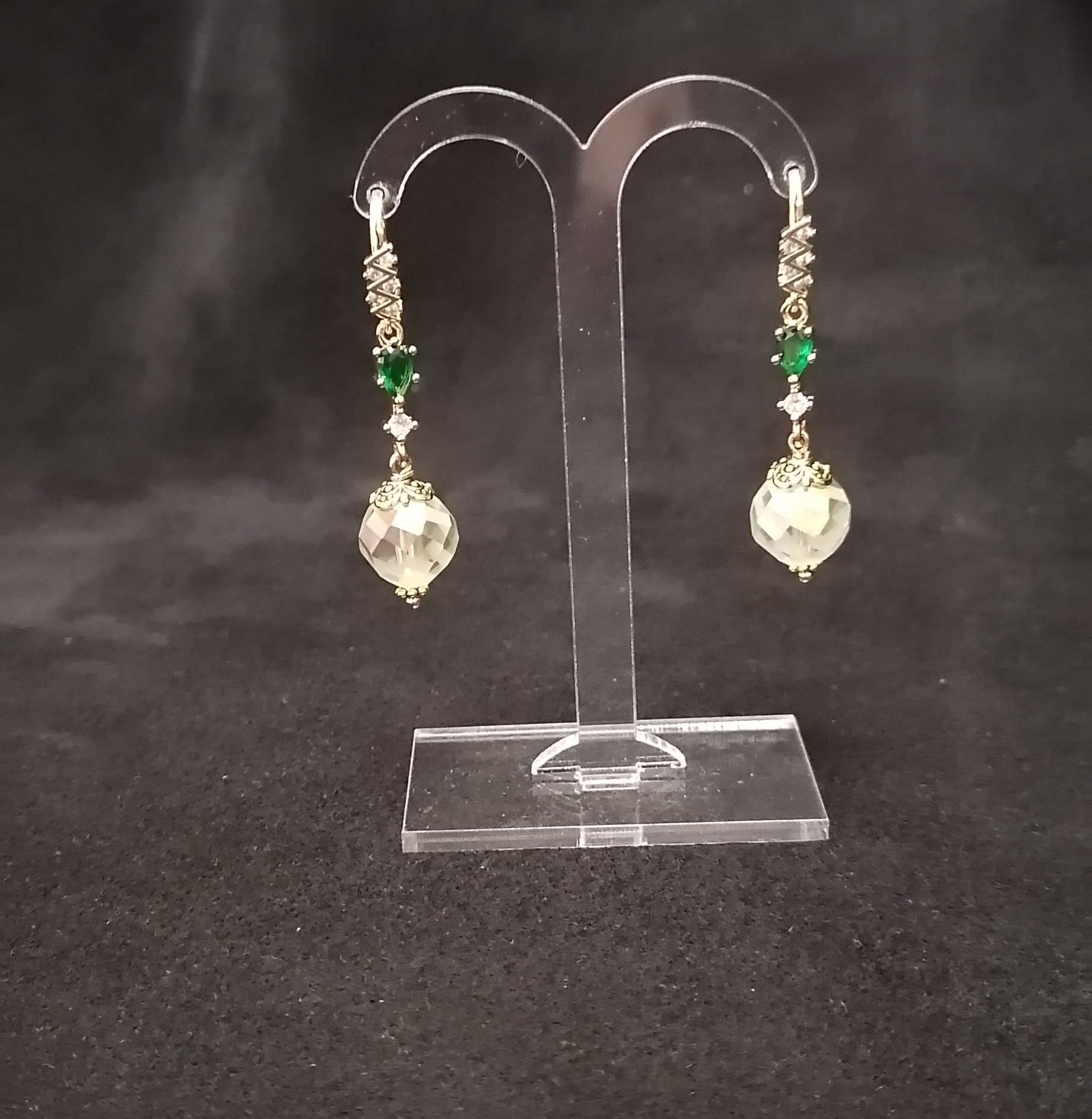 Серьги с хрусталем с премиальной позолоченной фурнитурой с цирконами и гипоаллегнными швензами.