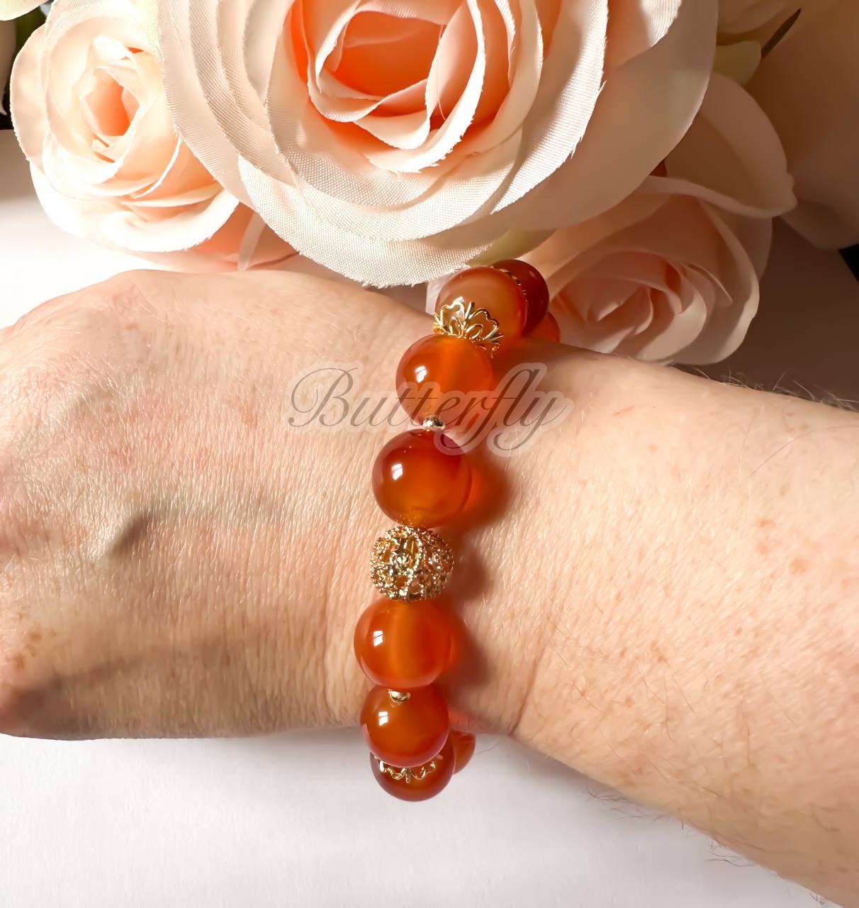 Комплект из сердолика с фурнитурой под золото. Браслет на обхват запястья 16-17 см+ 3 см удлиняющая цепочка. Комплект можно разделить.