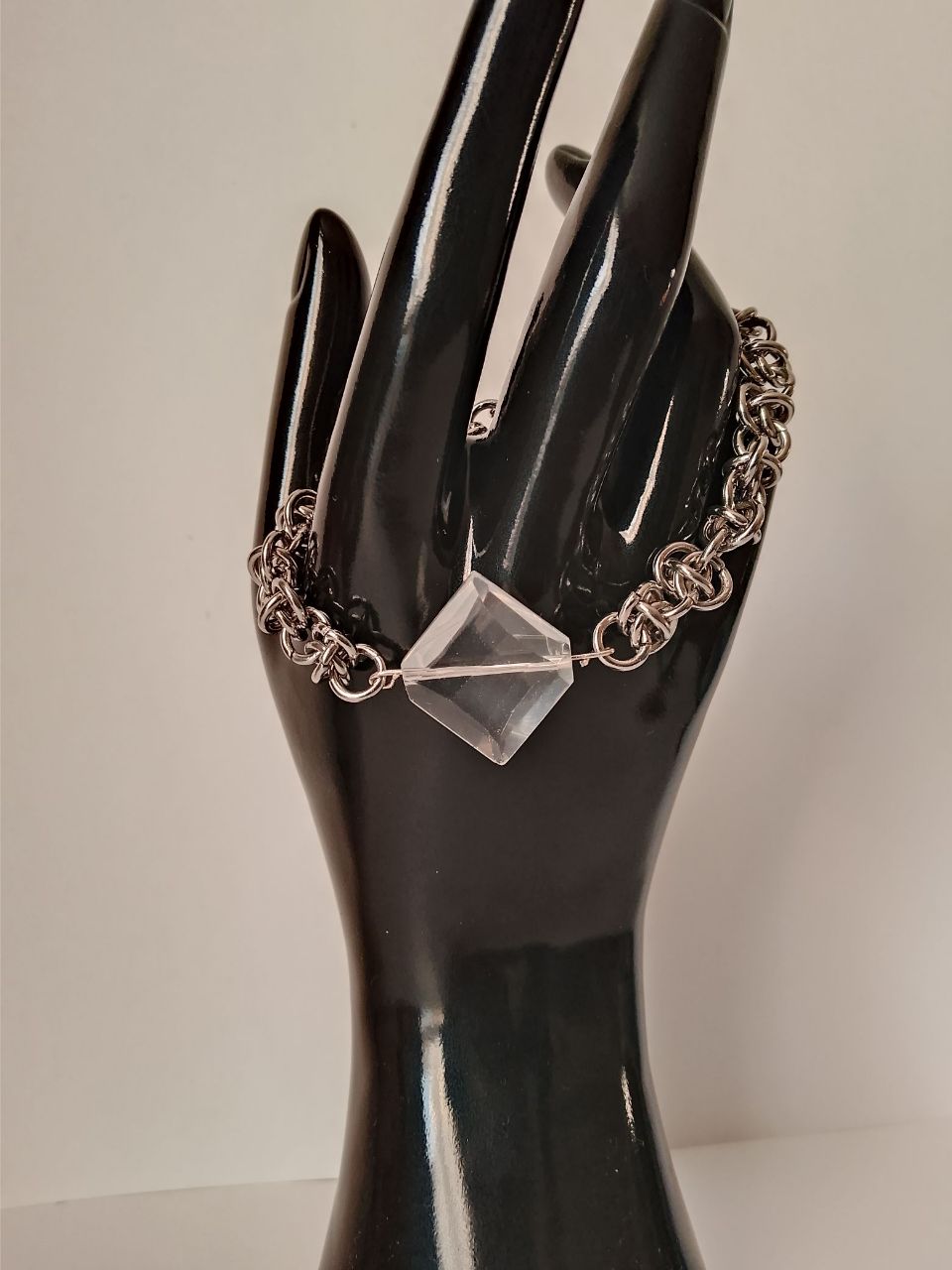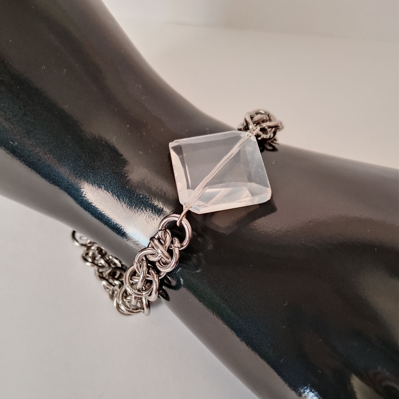 Браслет из стали с горным хрусталем «Чистое сияние» в кольчужной технике.