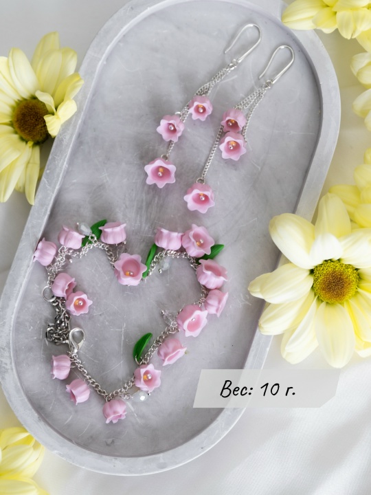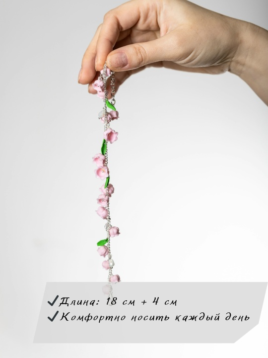 Добавьте в свой образ нежность и весенний шарм с нашим браслетом ручной работы из полимерной глины с ландышами!