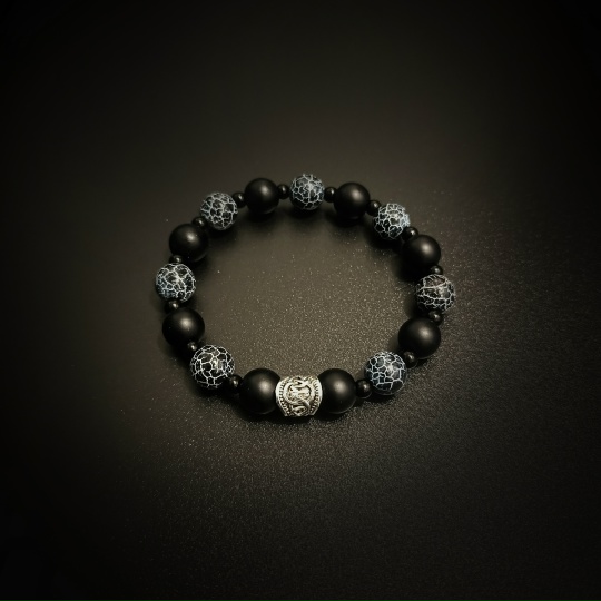 Чёрный агат + Чёрный морозный агат + Руна Альгиз