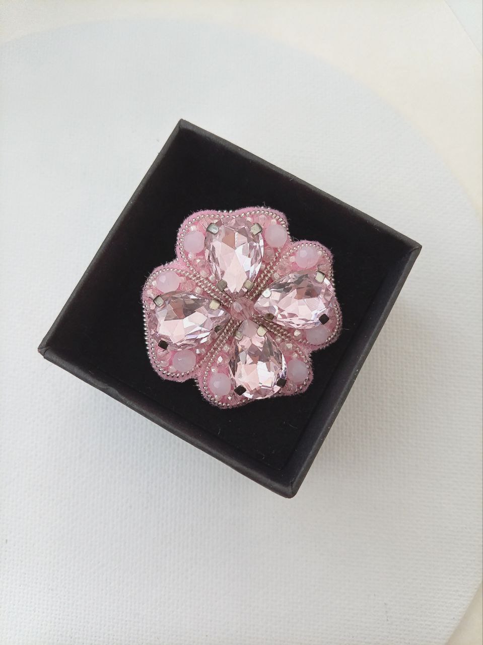 Брошь вышита на фетре с использованием кристаллов, японского бисера и бусин