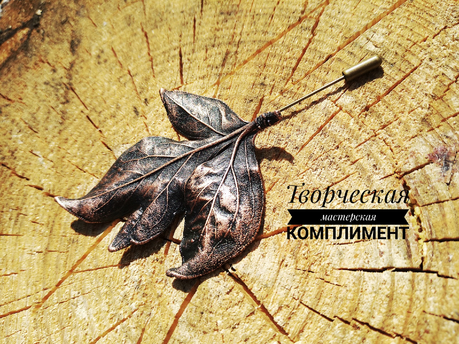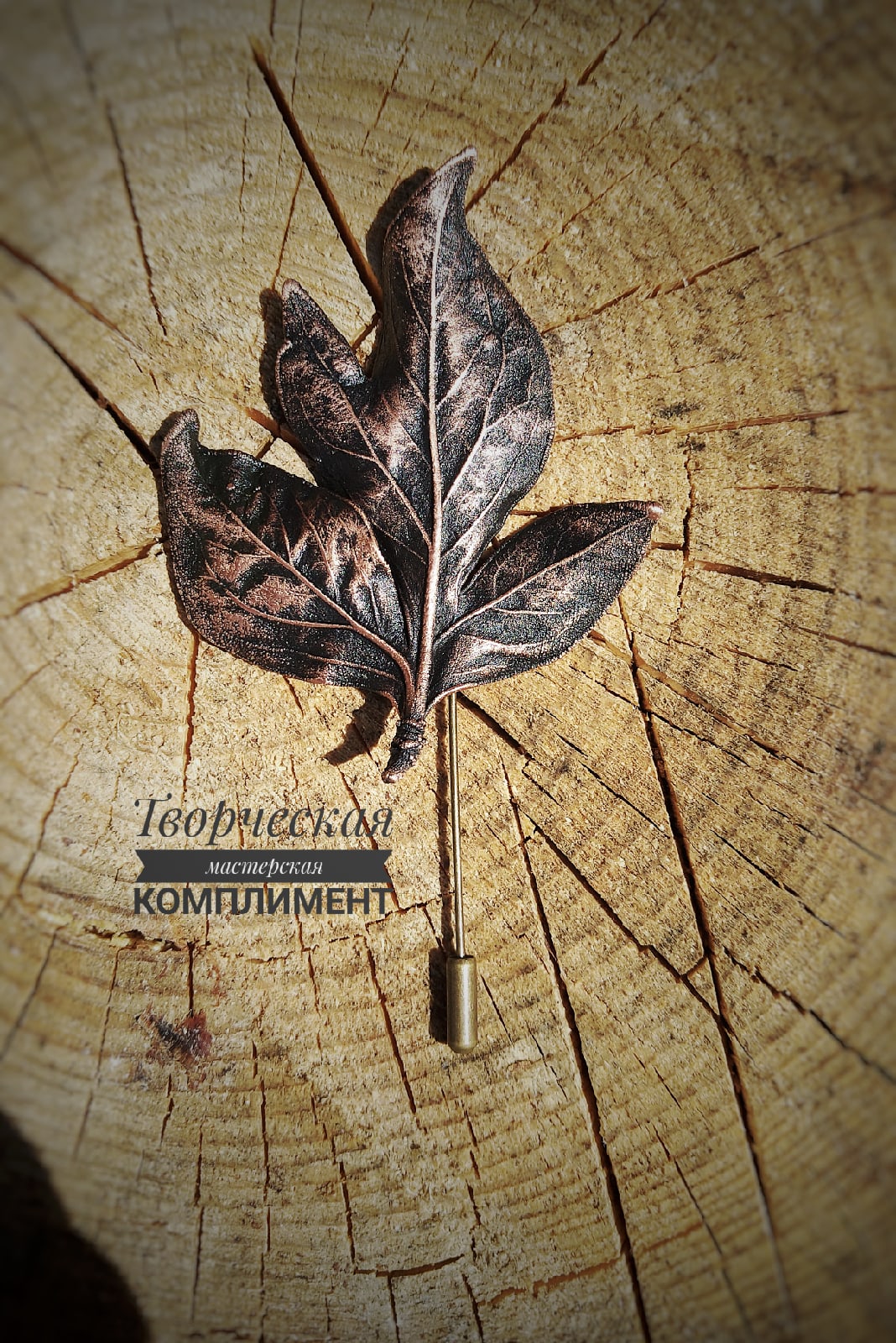 Брошь-игла из листочка пиона.