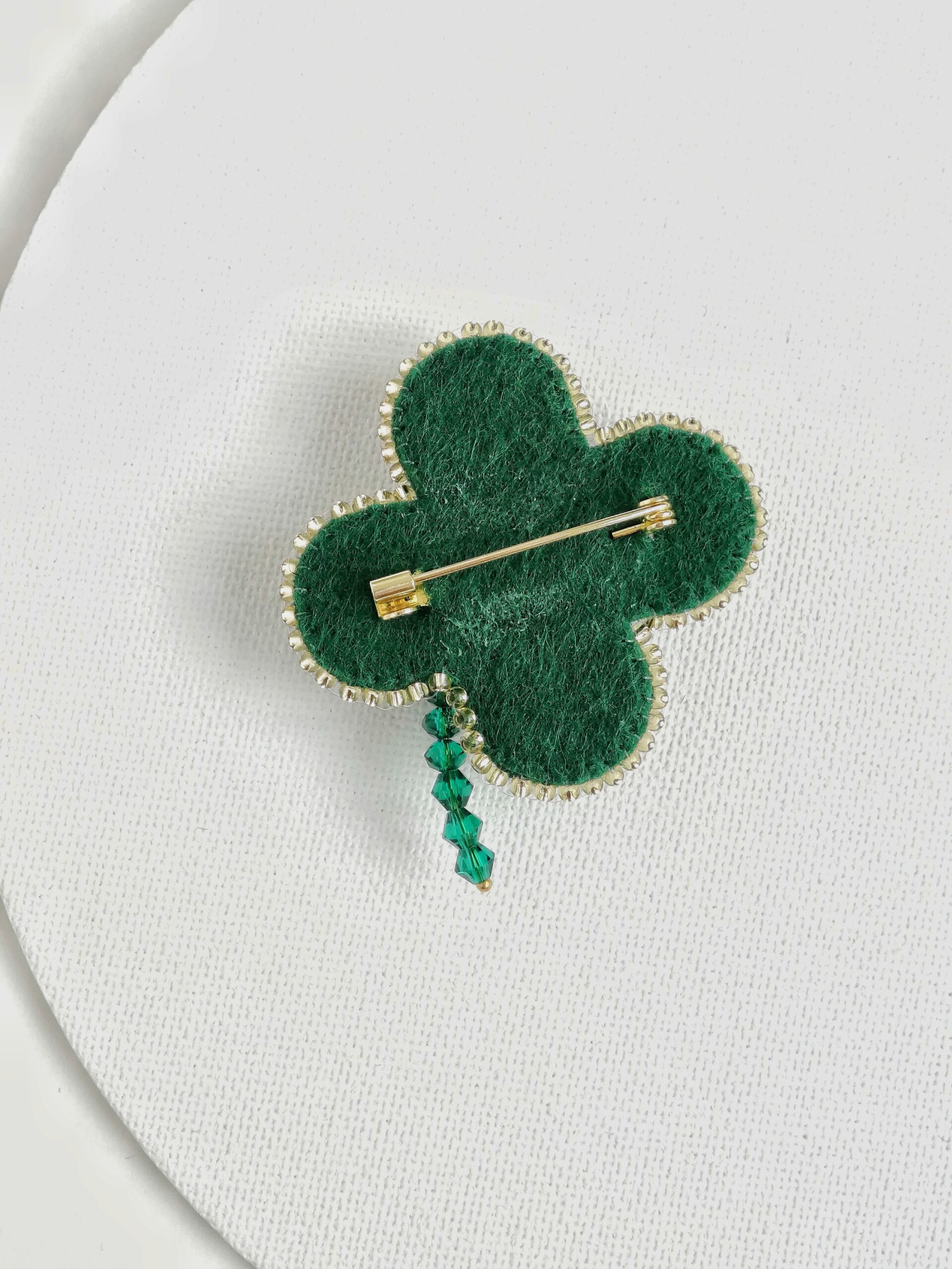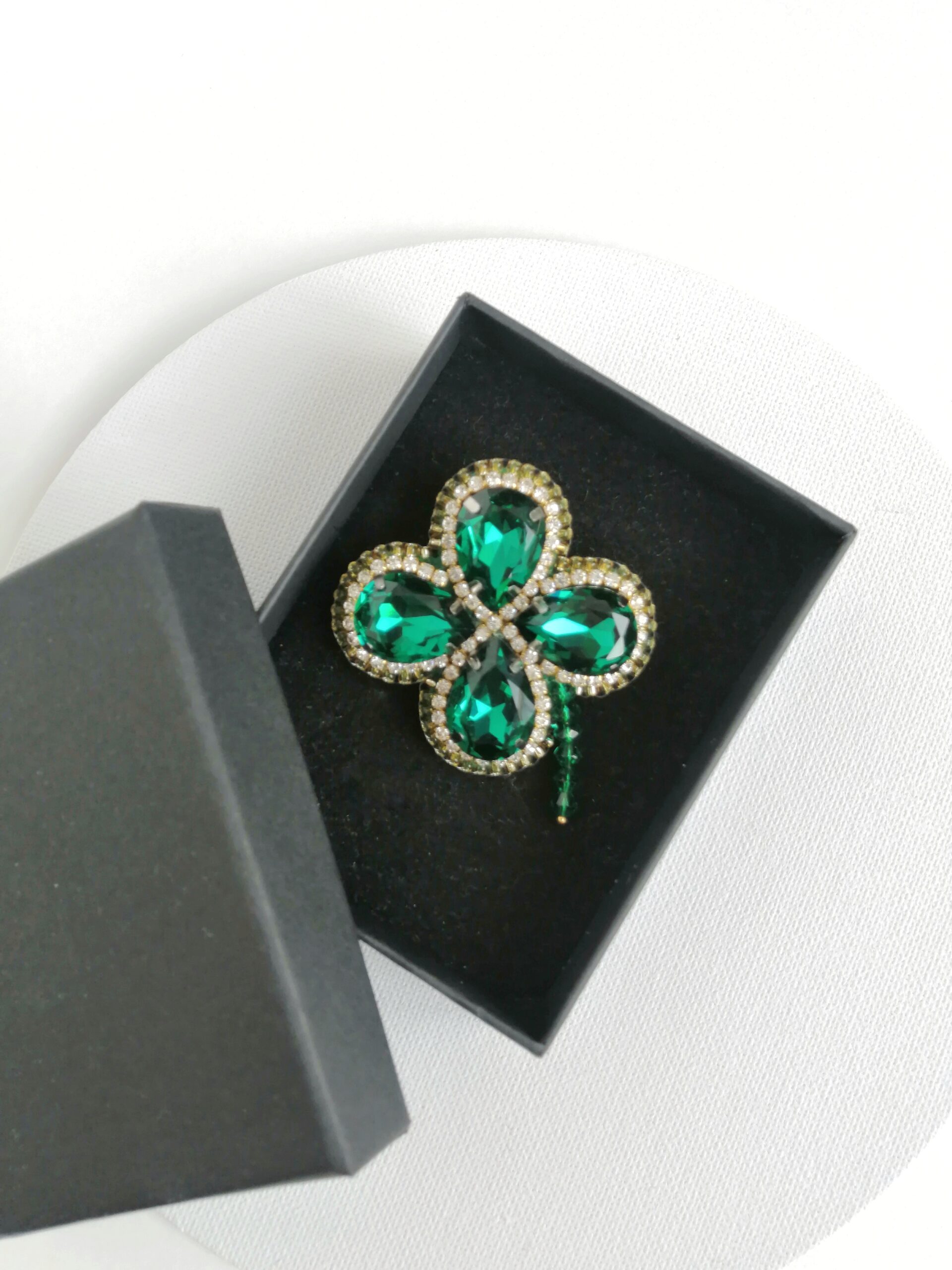 Брошь Клевер зеленый четырехлистный (под заказ)