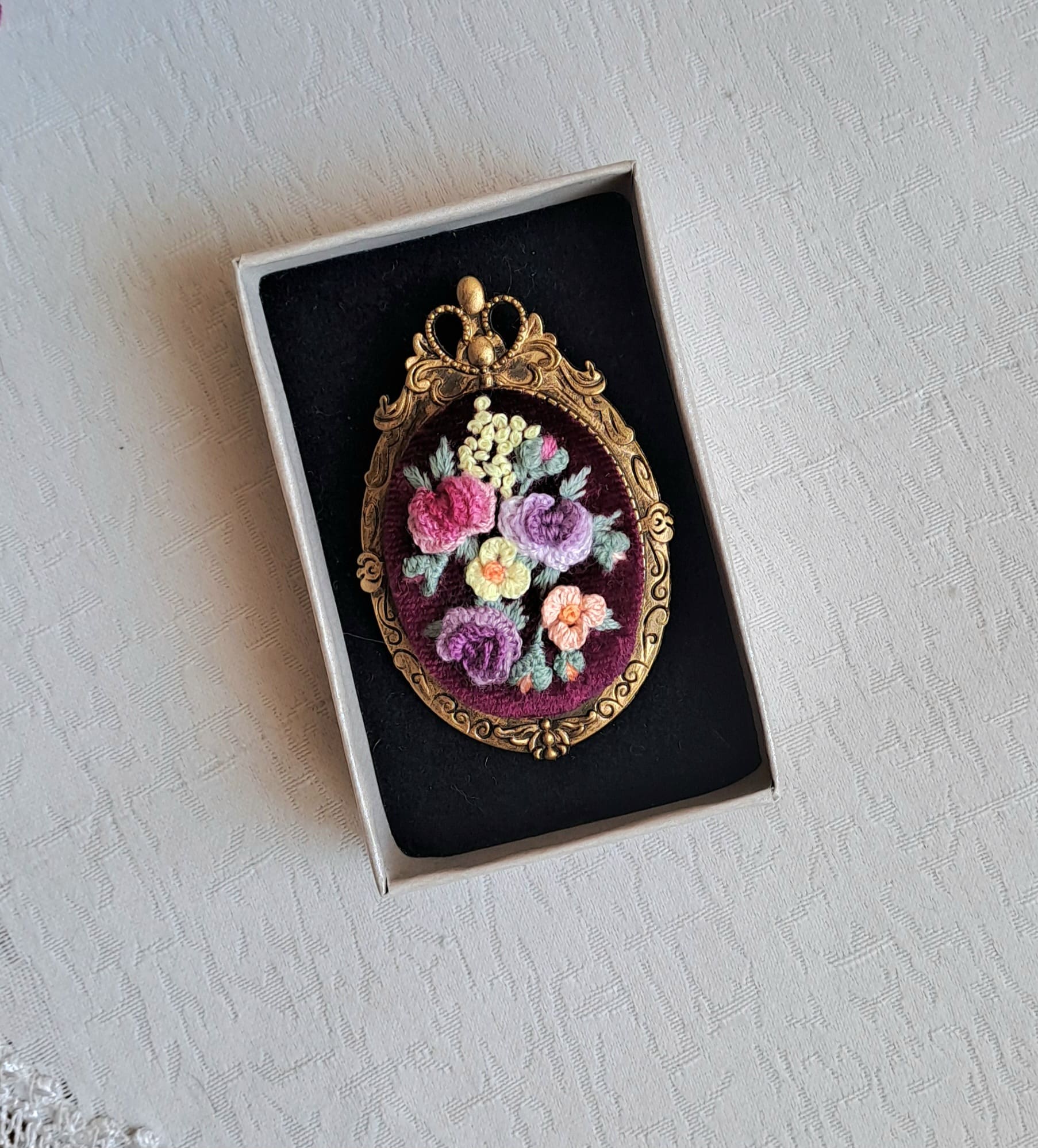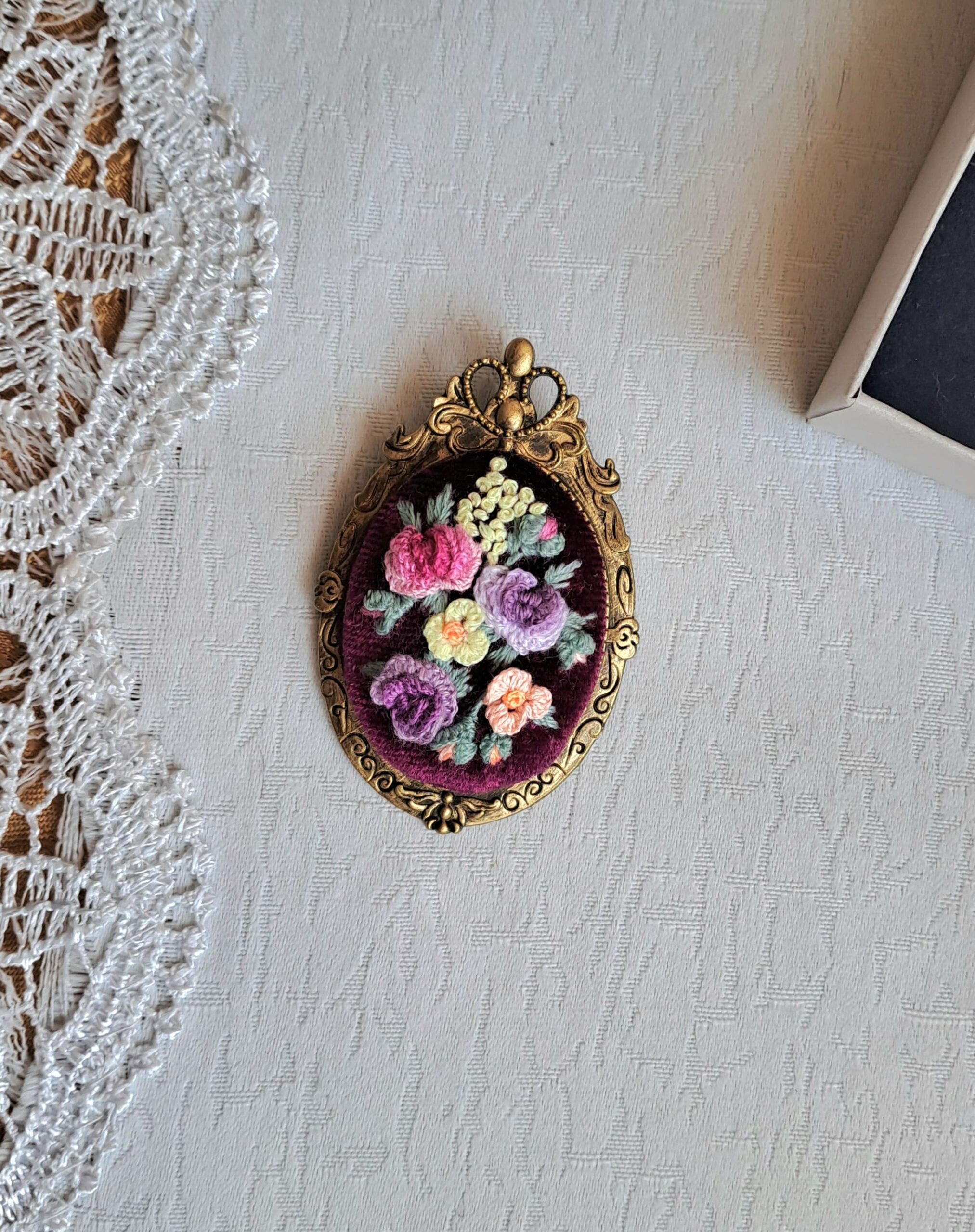 Брошь-кулон с вышивкой