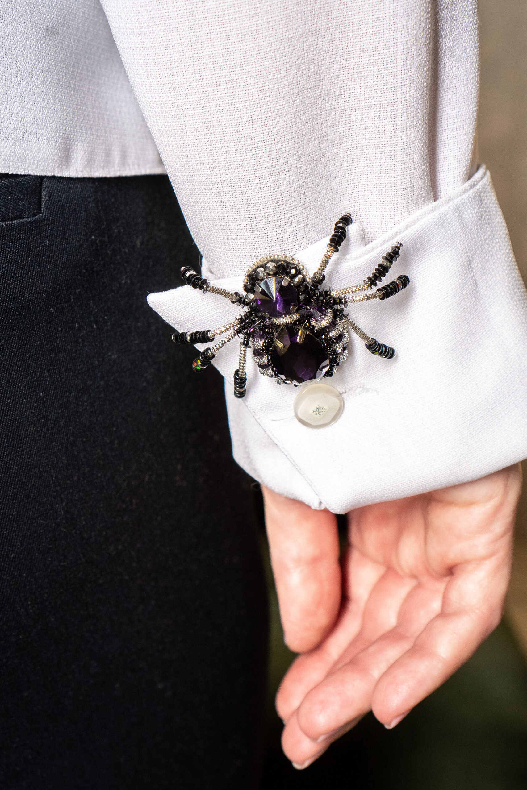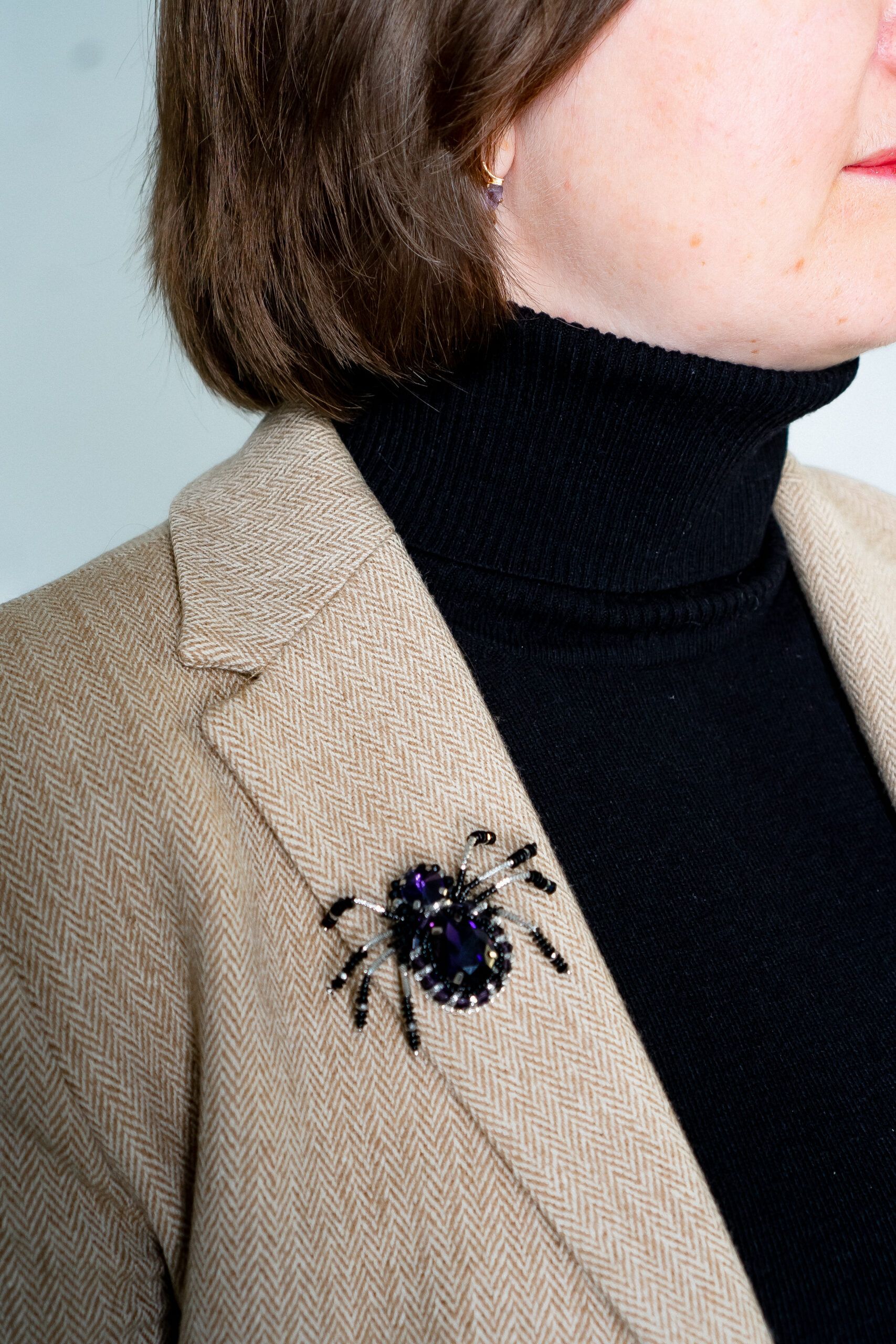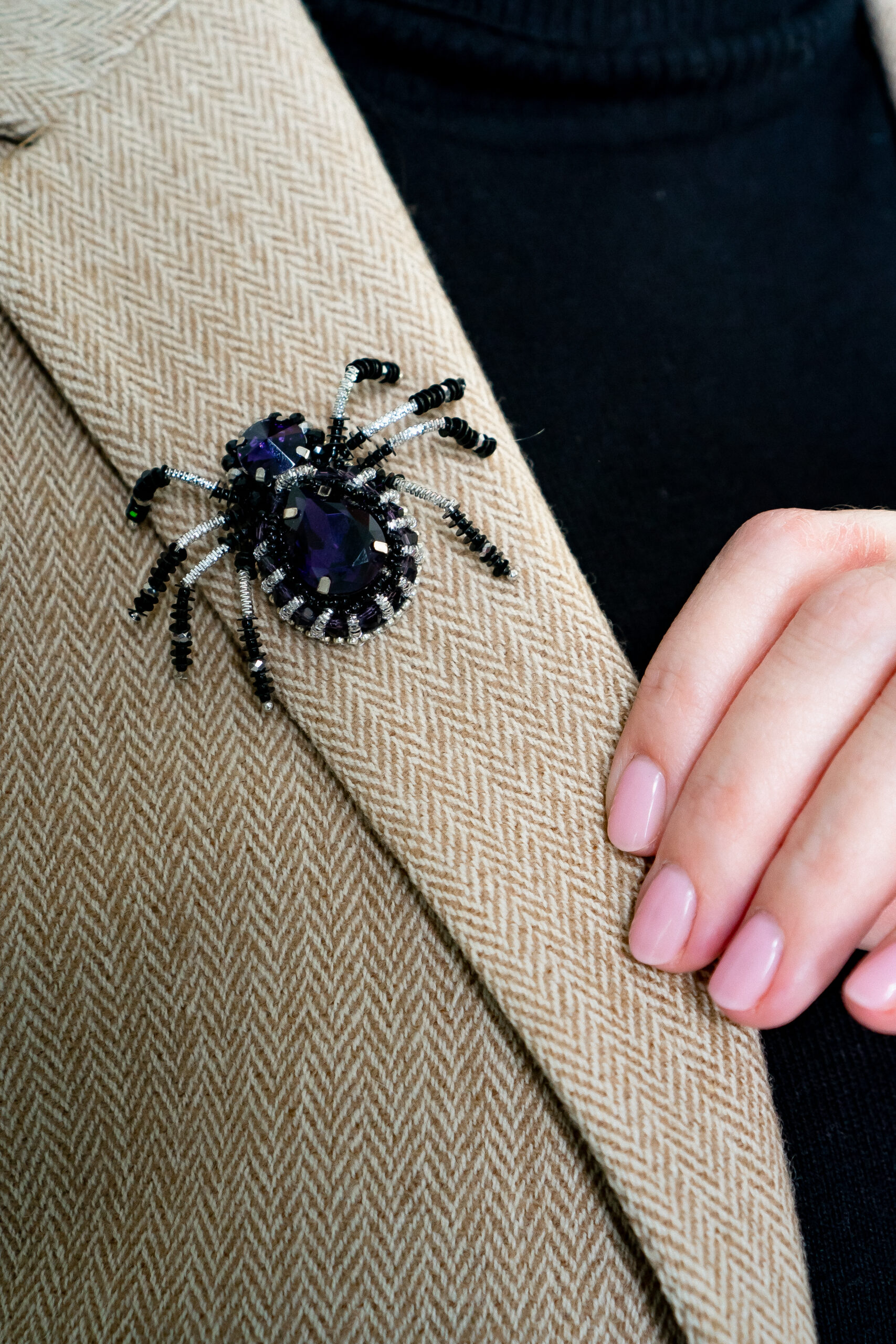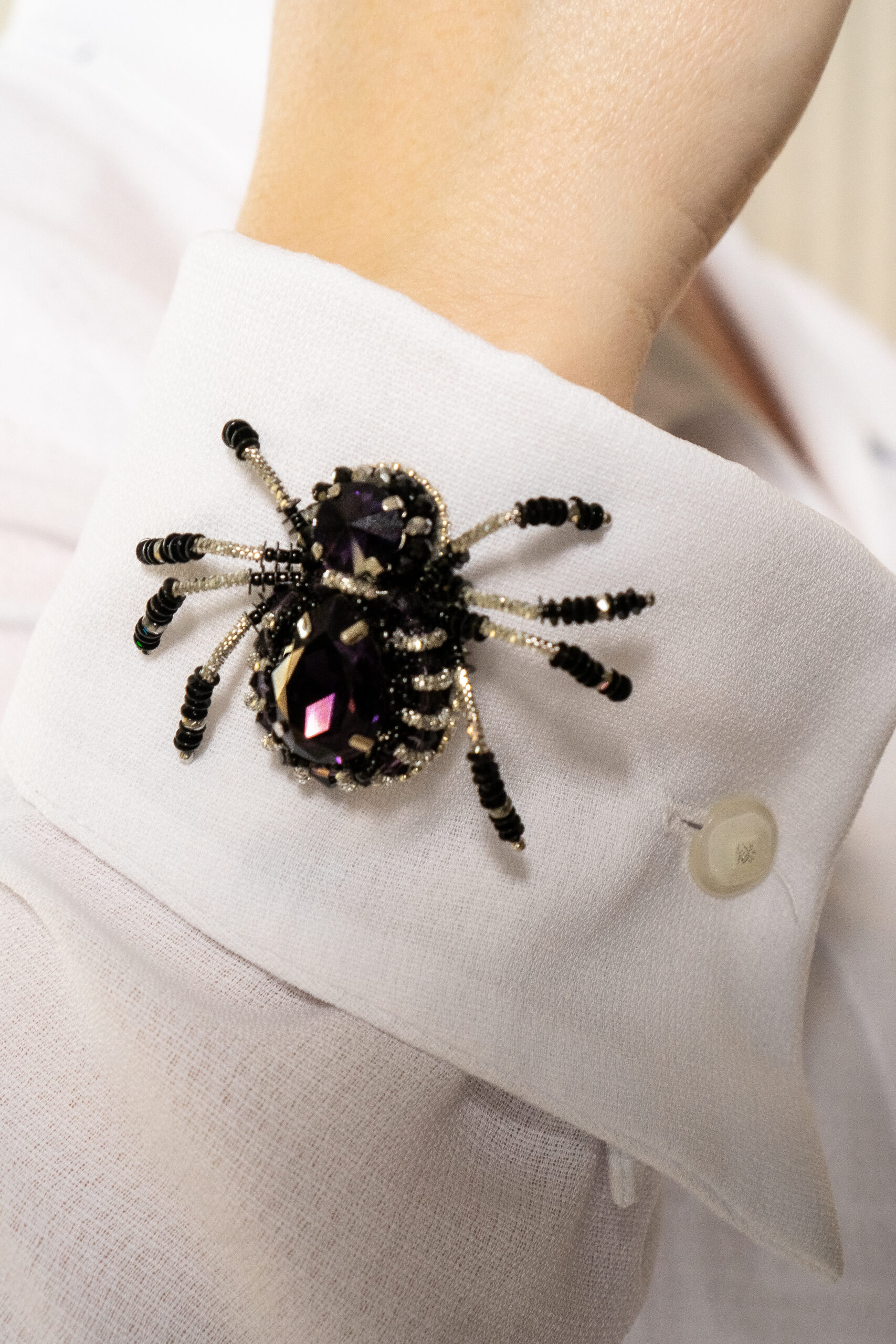 Брошь упакована в черную картонную коробку, которая может быть использована как подарочная.