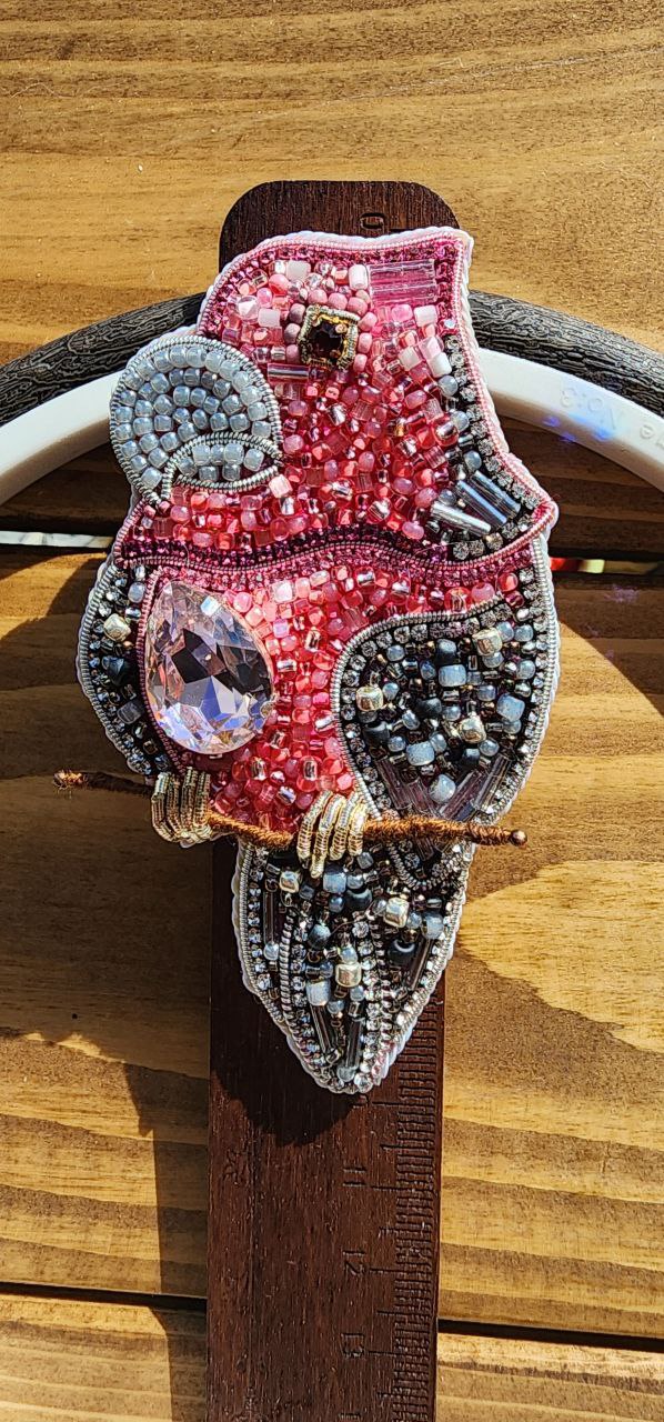 В работе использовался микс японского бисера, стразовые цепи, шатон и стеклянный алмазик.