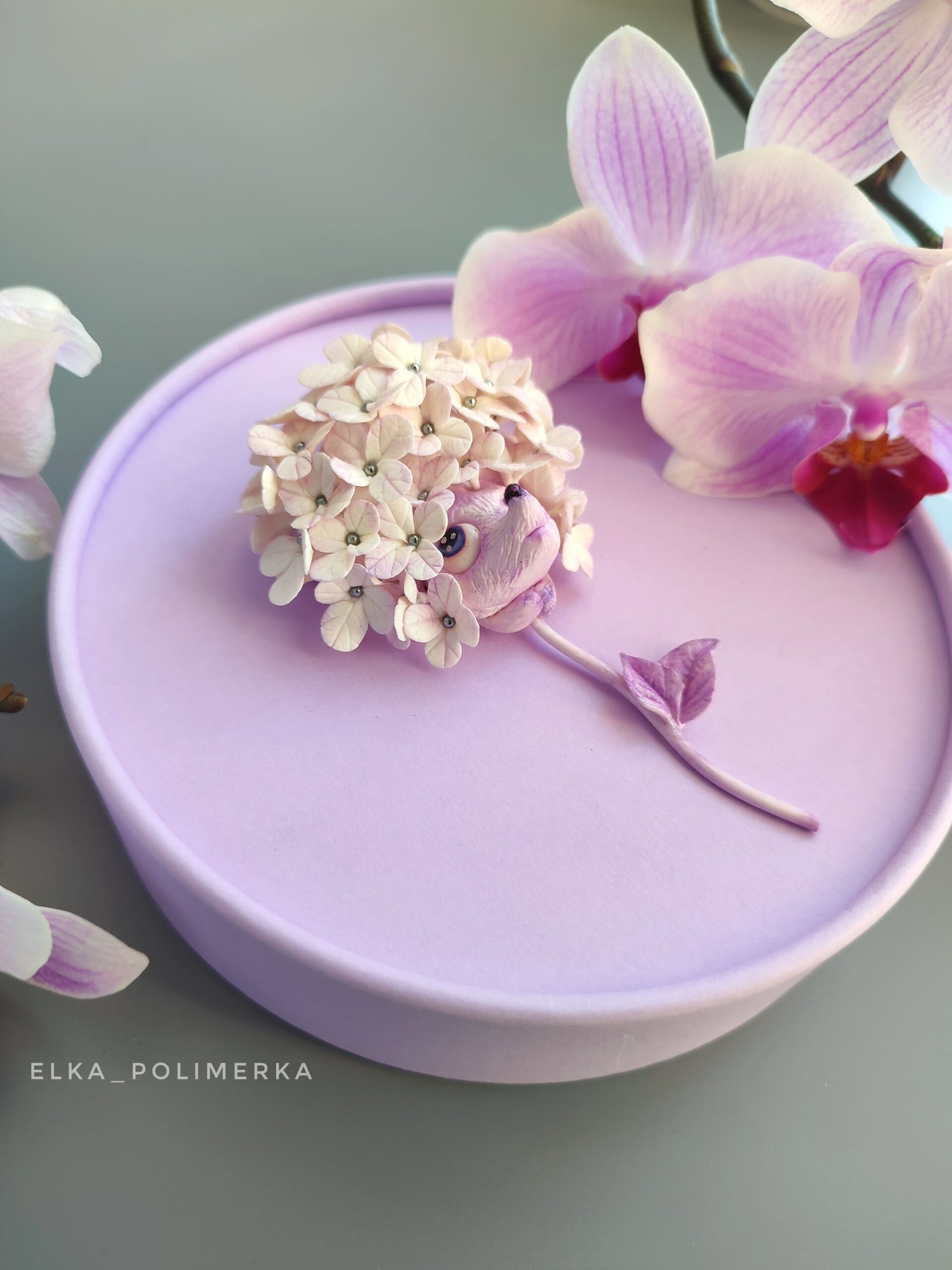 Это не просто аксессуар, а настоящее произведение искусства, сочетающее в себе очарование ёжика и изящество цветка гортензии.