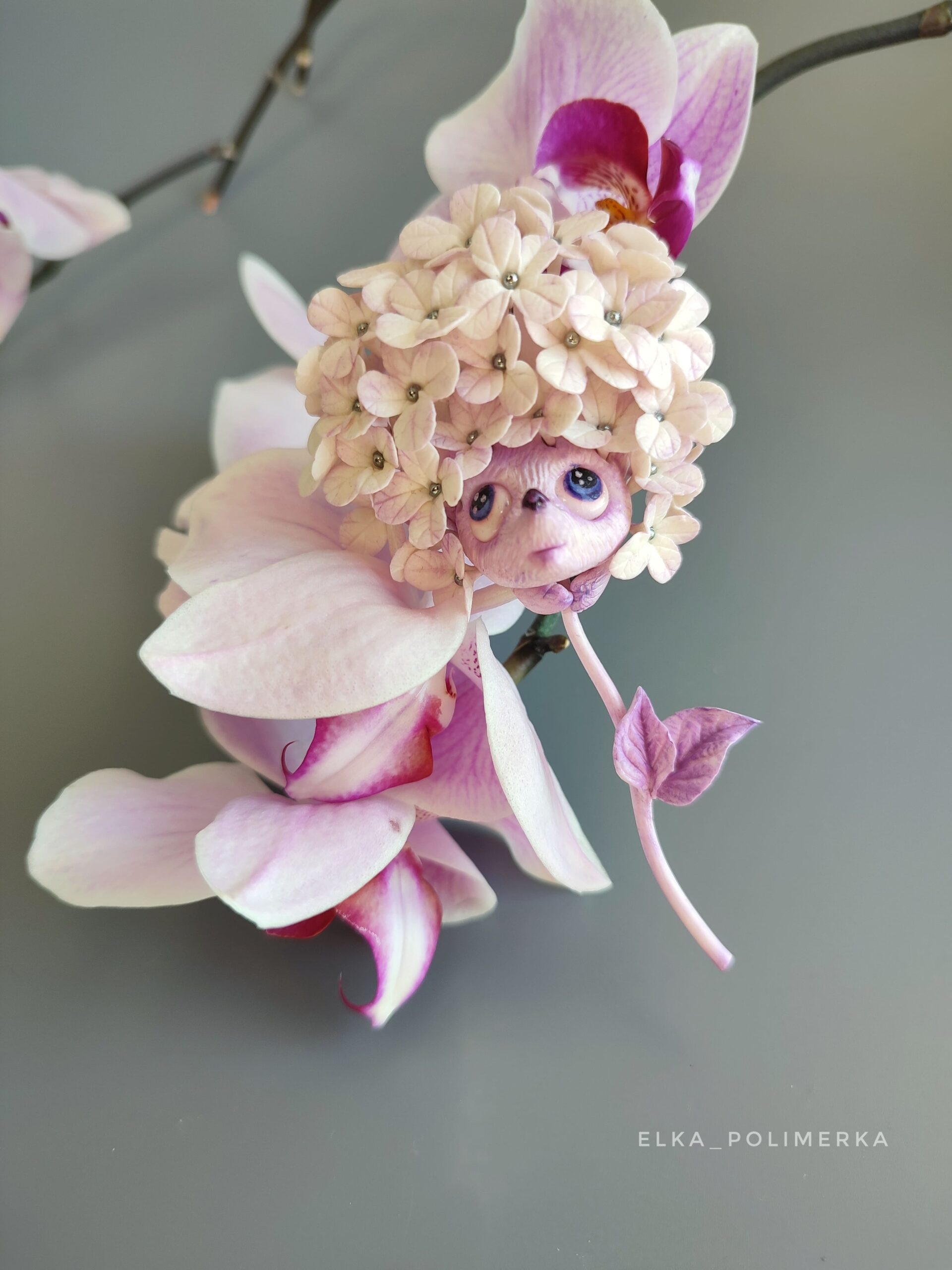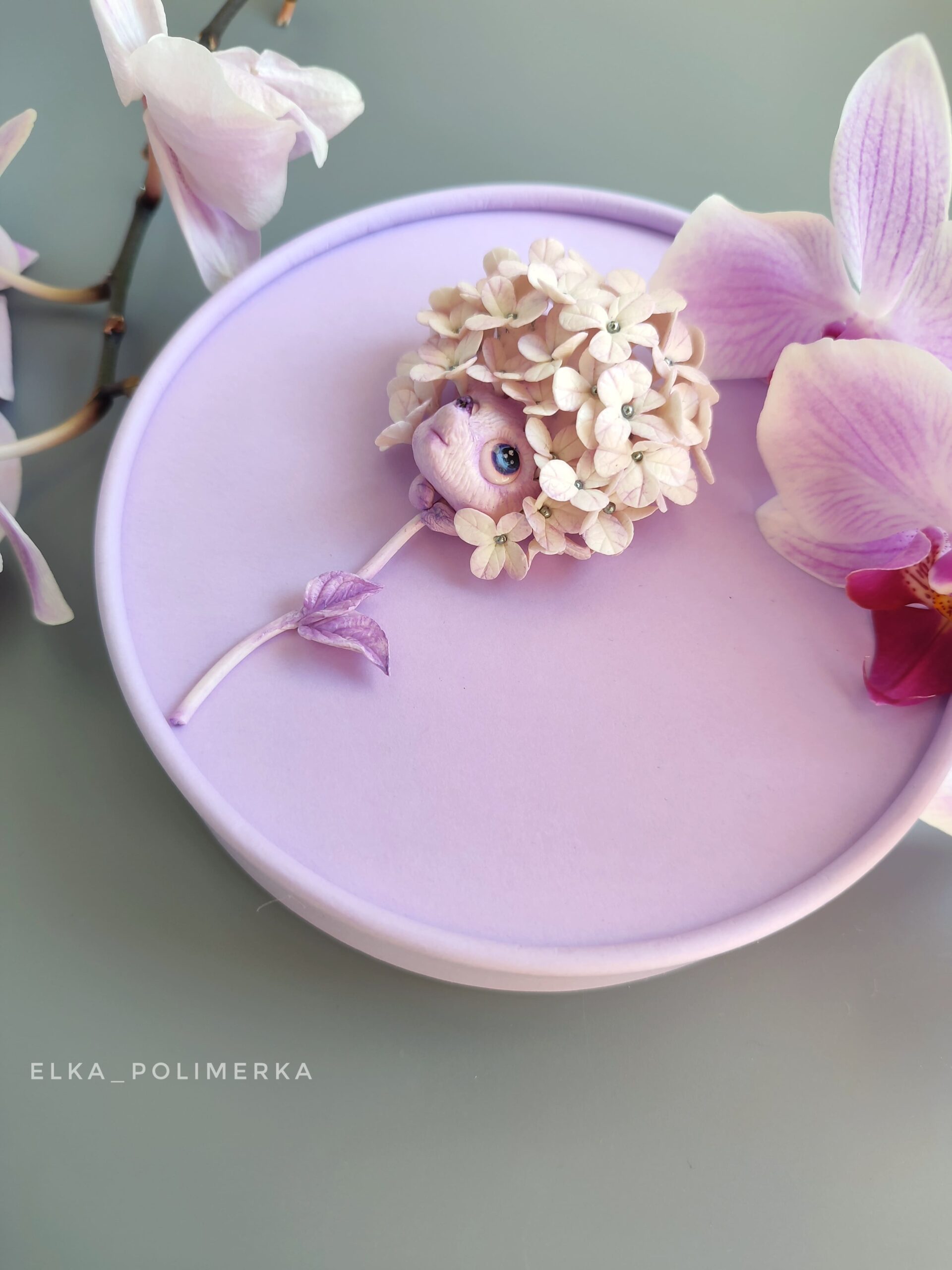 Фантазийный цветок — ёжик-цветок, где вместо иголочек — пышные соцветия гортензии. Мордочка ёжика служит основой композиции, придавая изделию особый шарм и выразительность.