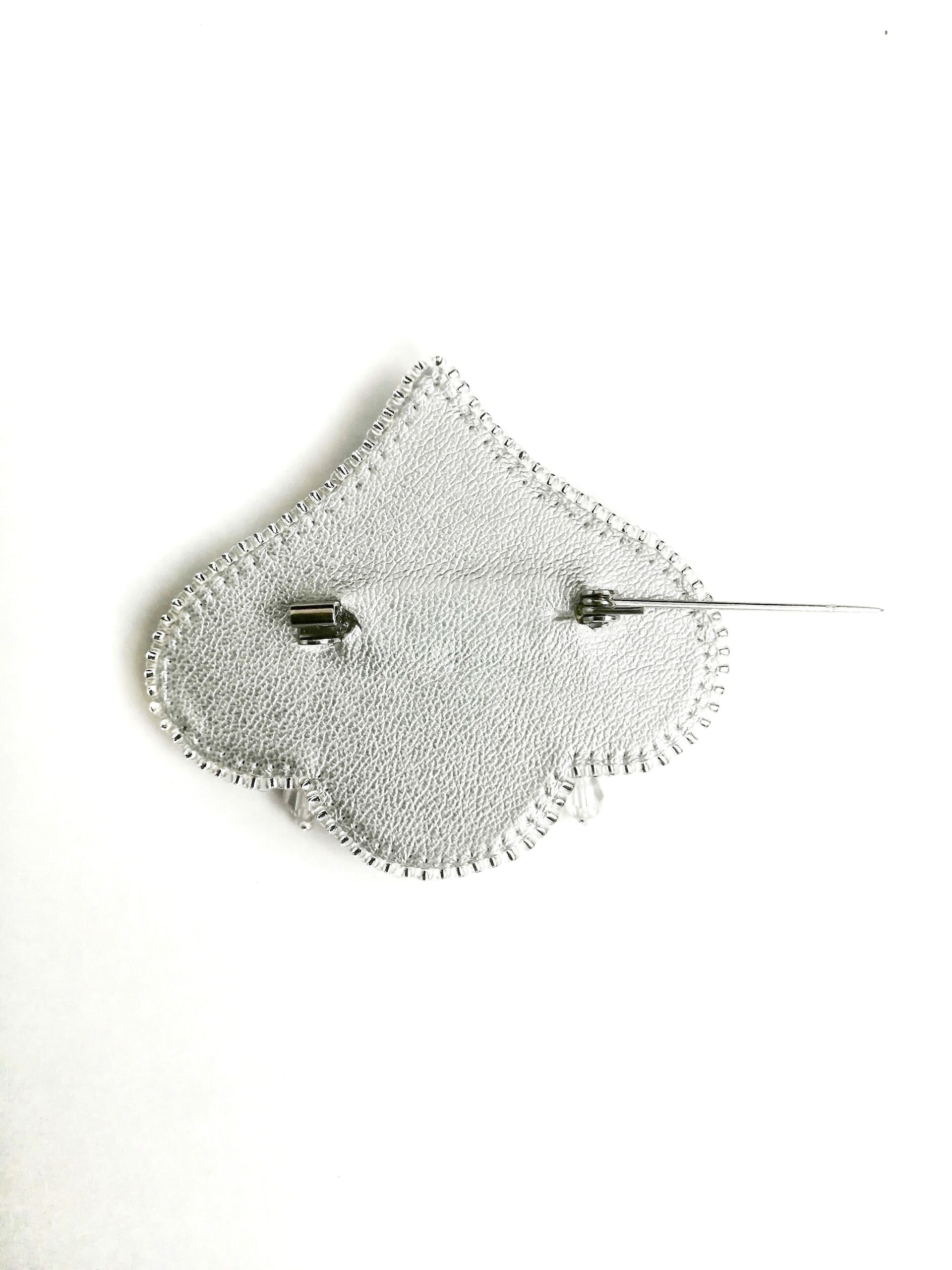 Вышита на белом фетре с использованием австрийского хрустального жемчуга, японского бисера и граненых бусин