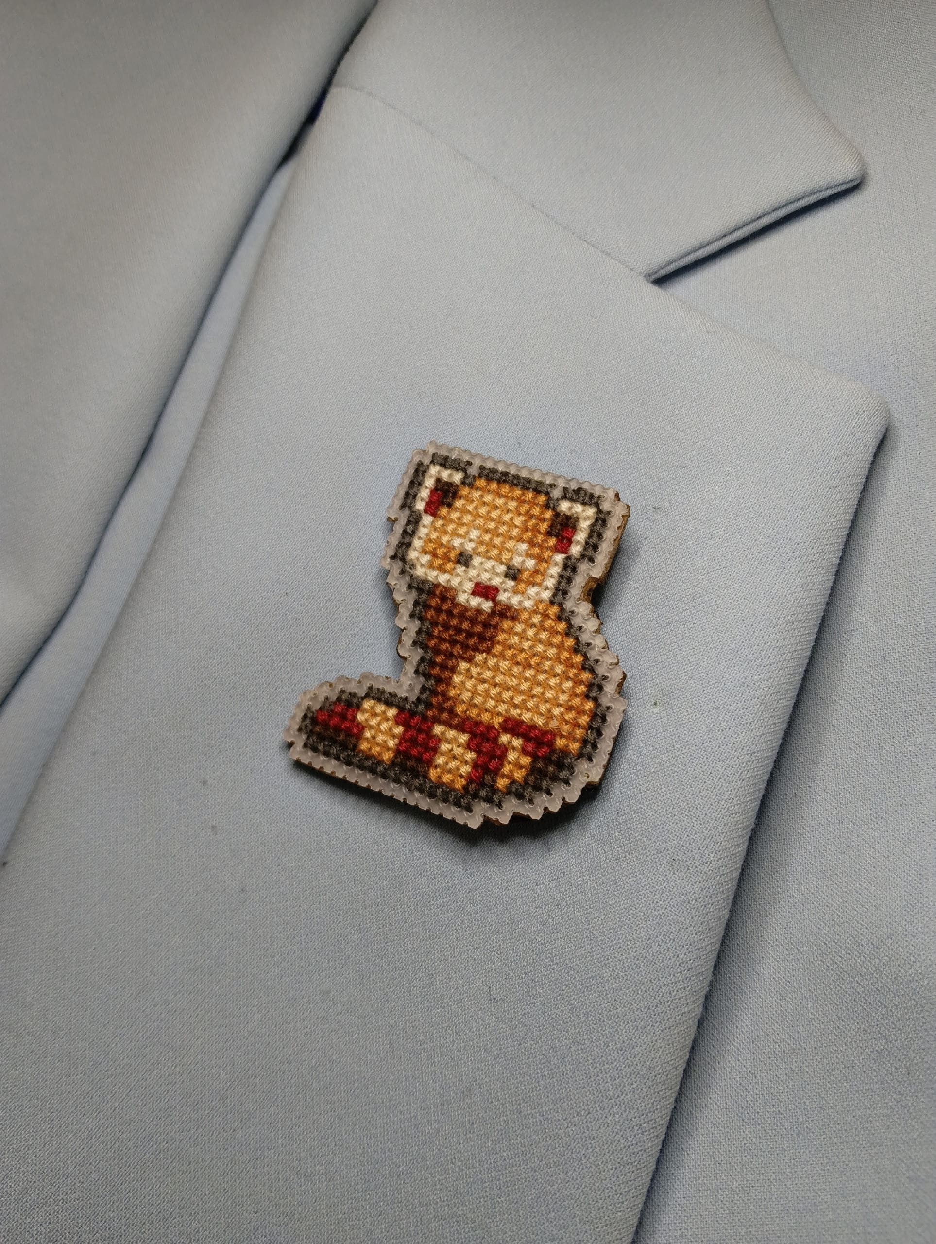 - Дизайн: реалистичное изображение красной панды с характерными рыже-коричневыми оттенками и чёрными акцентами. Ушки, глазки и пушистый хвост проработаны с особой тщательностью, что делает брошь по-настоящему живой.