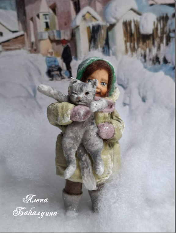 Ватная игрушка «Девочка с котёнком»