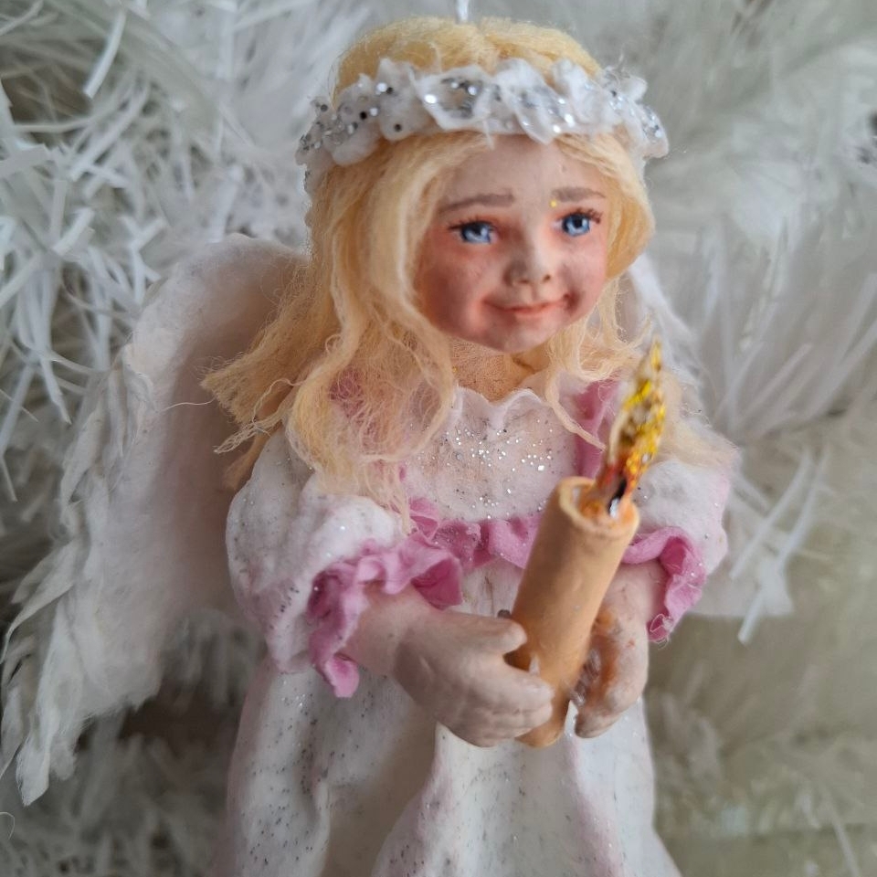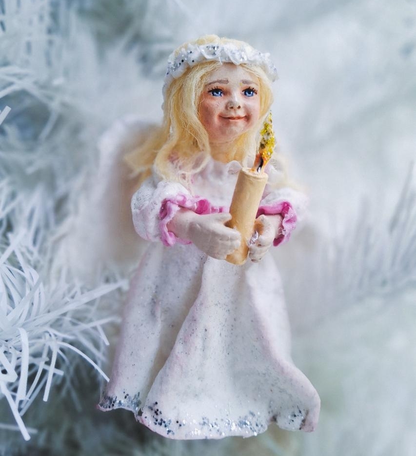 Изящная ватная игрушка в виде ангела — утончённое украшение для рождественской ёлки, создающее атмосферу тепла и волшебства. Выполнена вручную с исключительной детализацией.