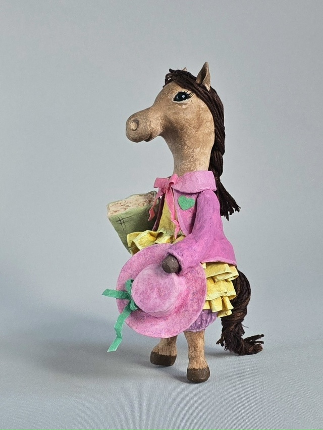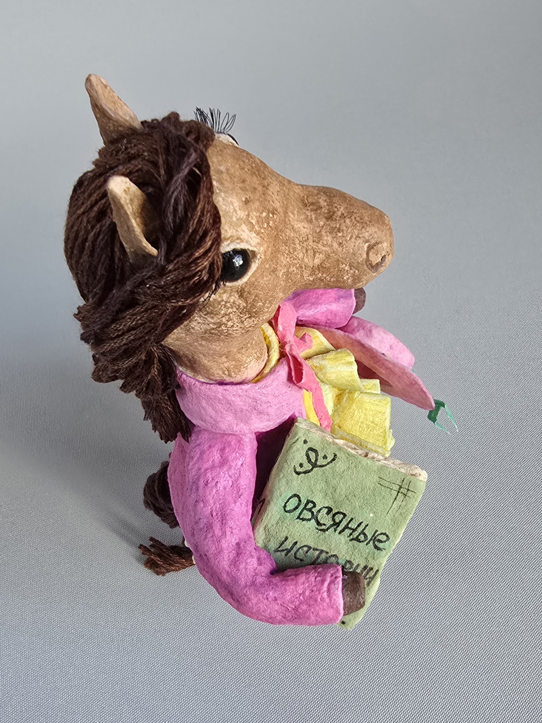 Эта изящная лошадка уже готова к зимним каникулам!В своем элегантном желтом платье и очаровательной розовой шляпке она словно сошла со страниц рождественского романа. А в дороге ее будет согревать стильное пальто и любимая книга «Овсяные истории». Идеальный подарок для тех, кто верит в чудеса и обожает уют!