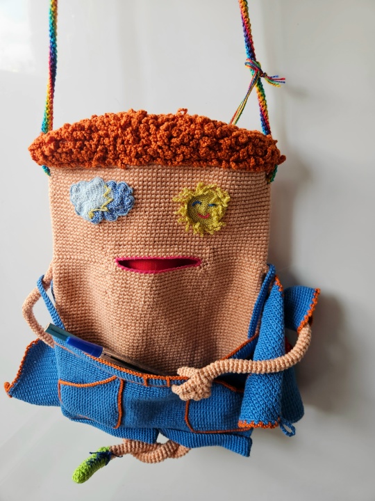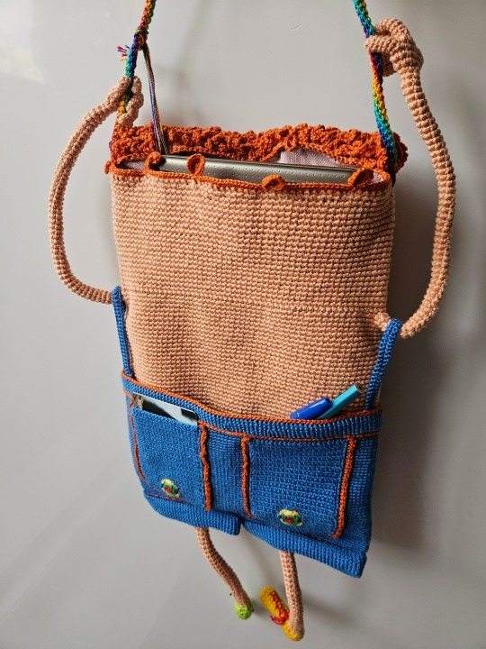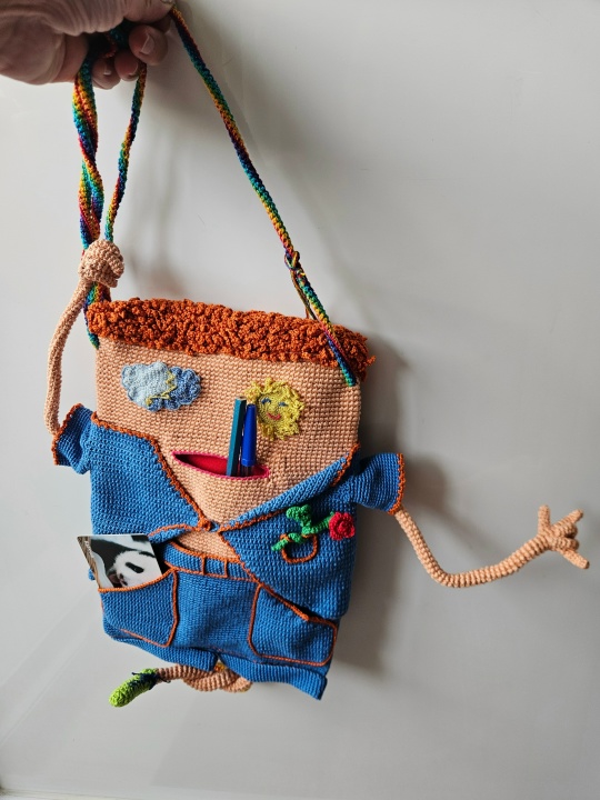 Вязаная сумка-планшет-трансформер с 3д_элементами «Радостный пиДжончик»