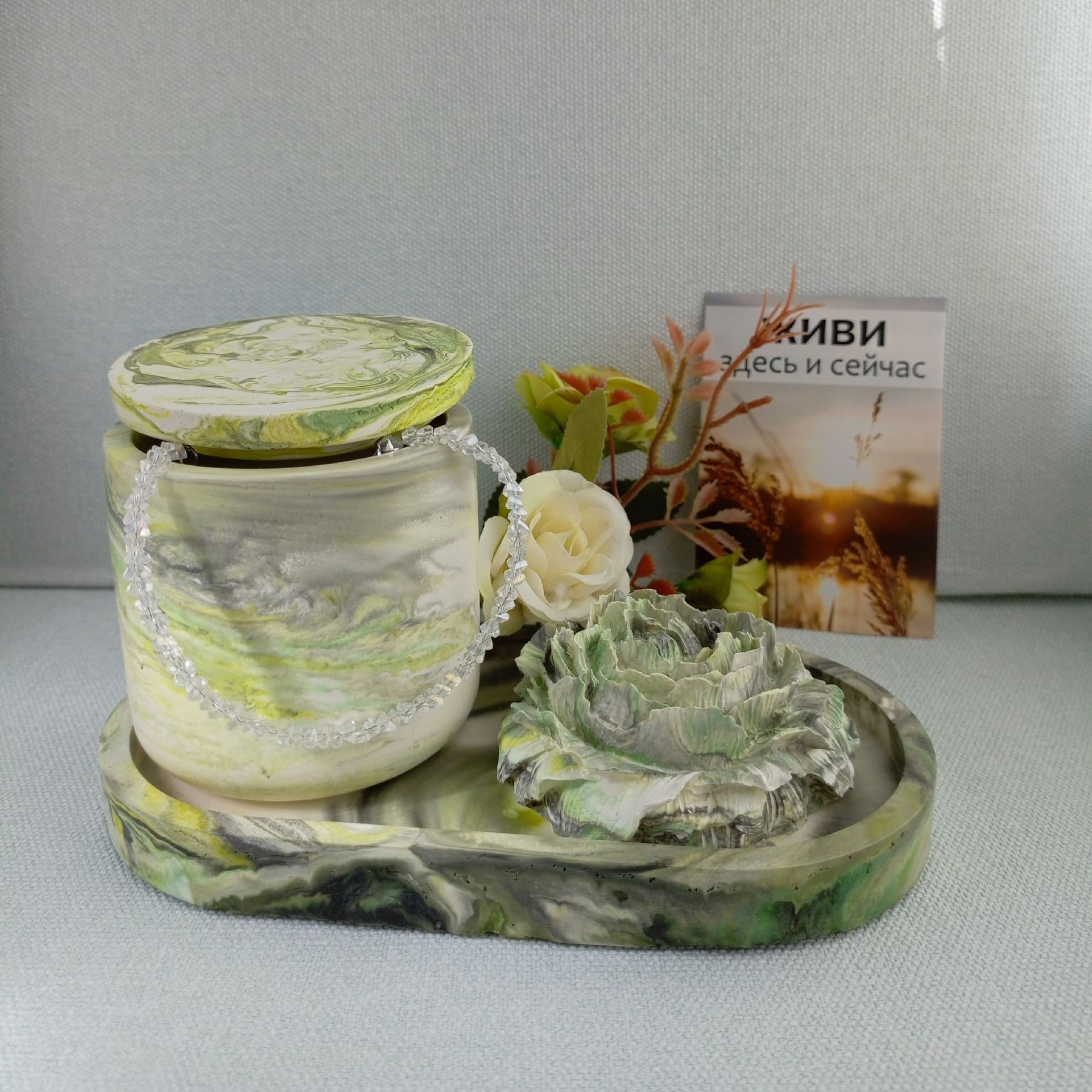 едином художественном стиле с имитацией натурального камня (малахит). Набор