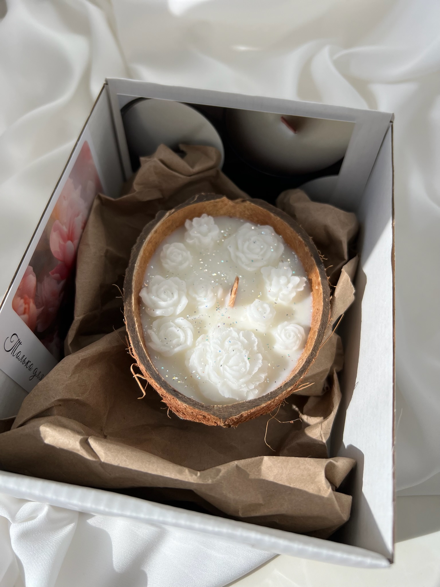 Декоративная ароматическая свеча в кокосовой скорлупе ручной работы