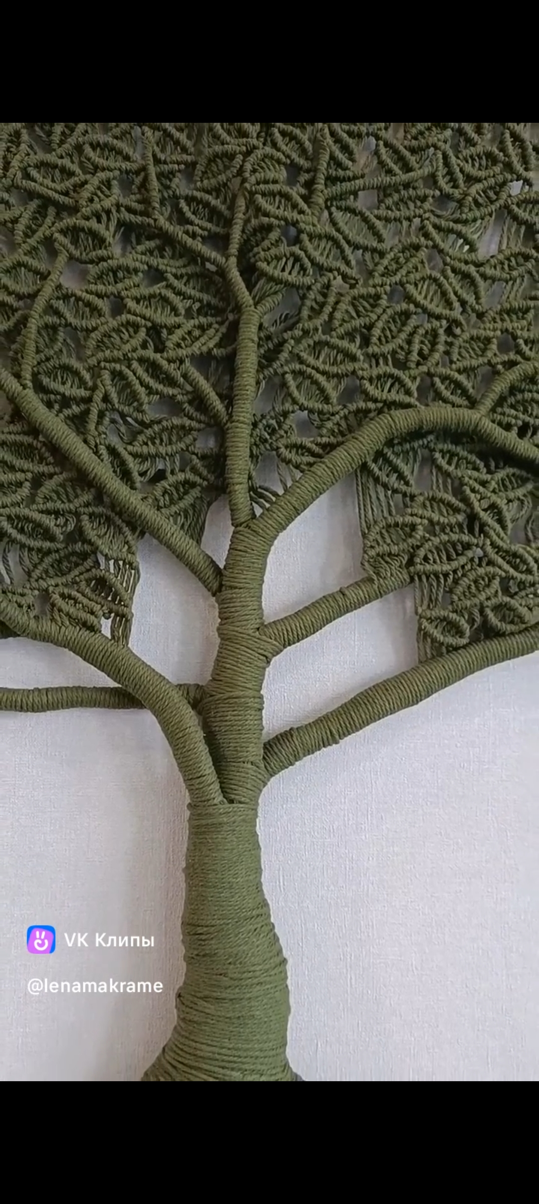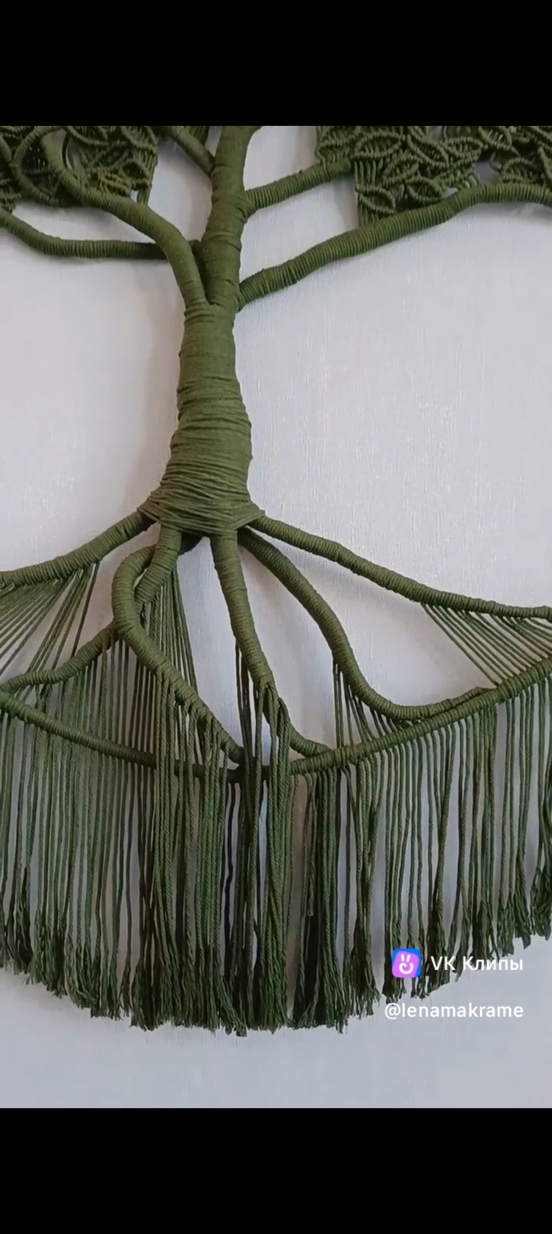 Техника: сложное узелковое плетение макраме с детализированными элементами ветвей и корней.