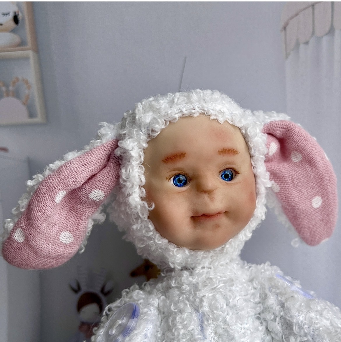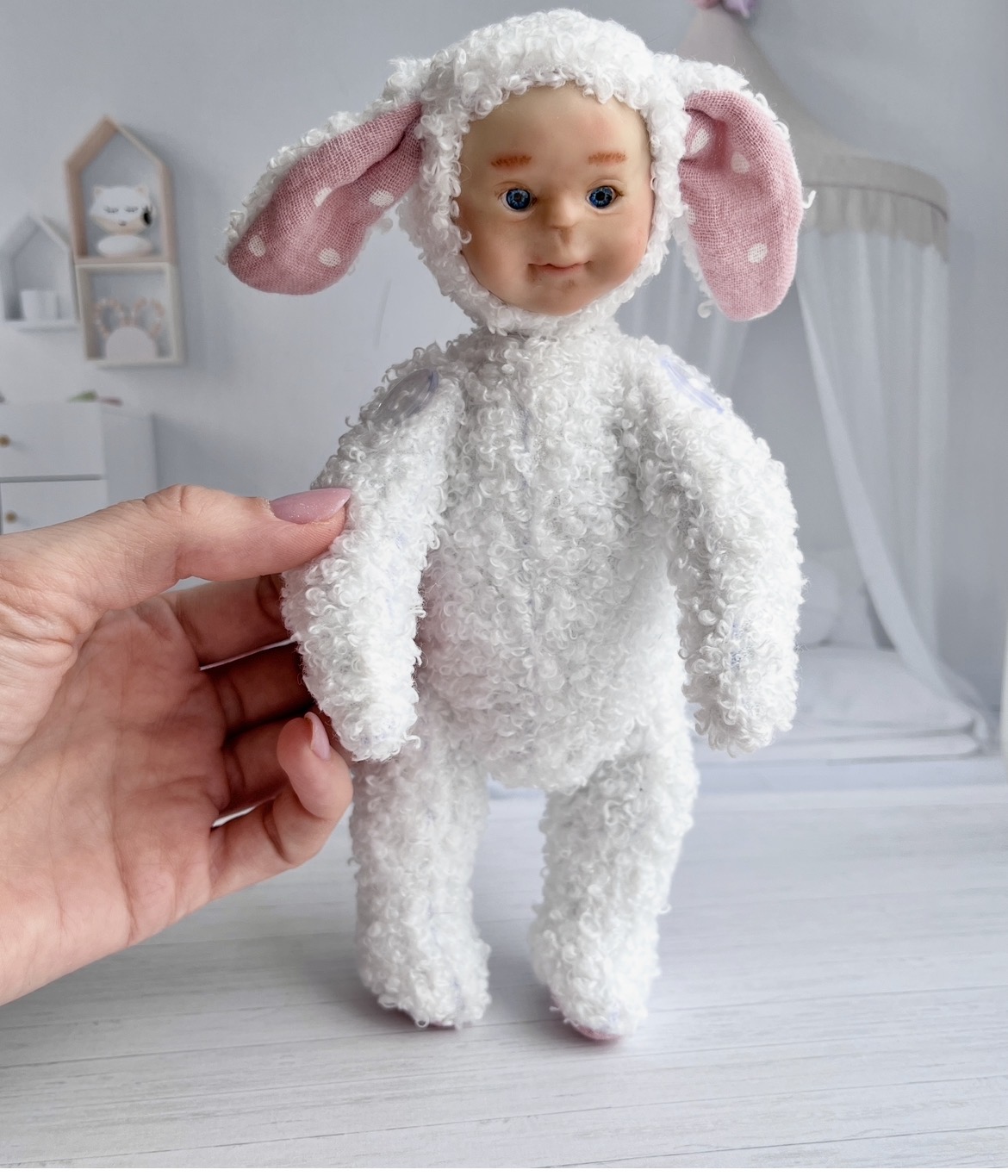 Мягкая игрушка в смешанной технике. Подойдет для интерьера детской комнаты. А так же в качестве подарка для ребенка от 7 лет. Не для активной игры.