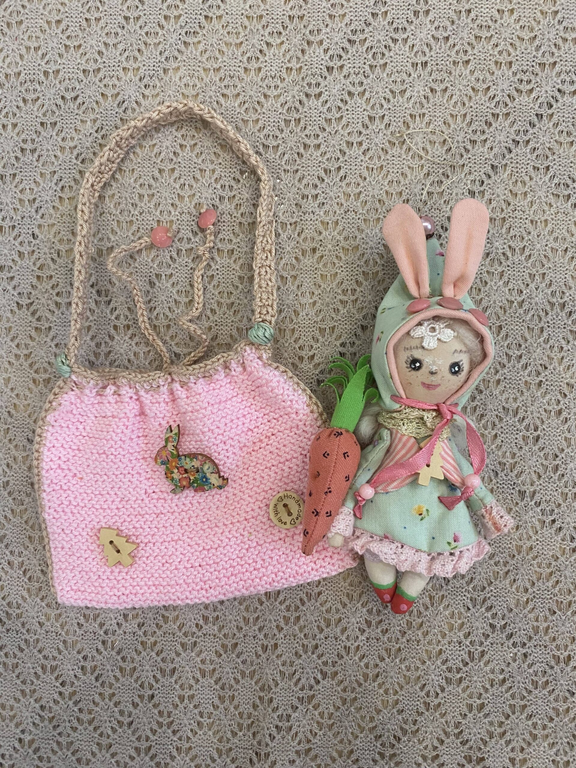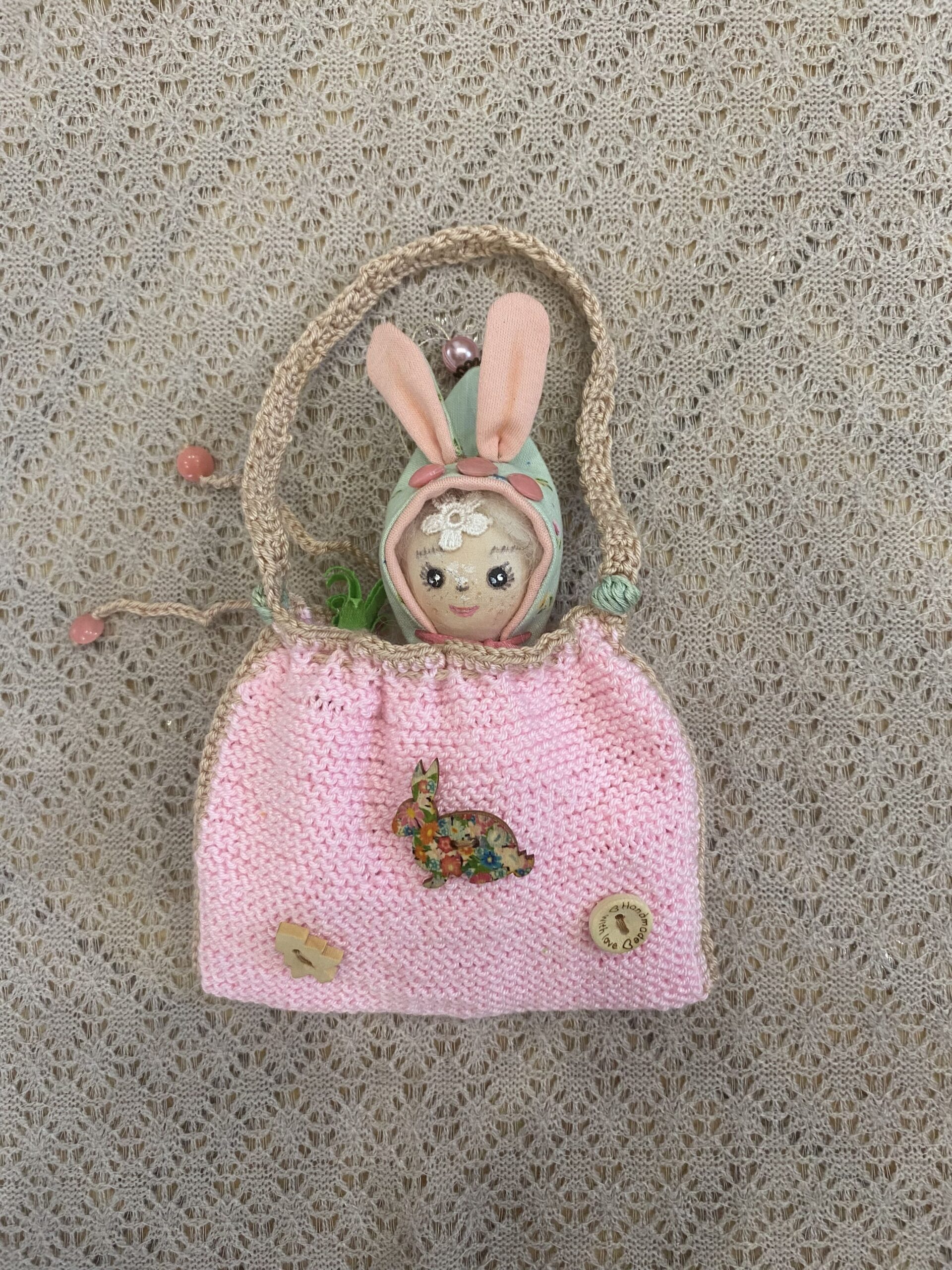 Текстильная игрушка Зайка в домике! Изготовлена из натуральных тканей. Сумочка домик связан спицами и крючком. Идеальный подарок для любого ребенка . Подойдет для ролевых игр, которые развивают воображение , мышление. А также украсит интерьер детской комнаты.
