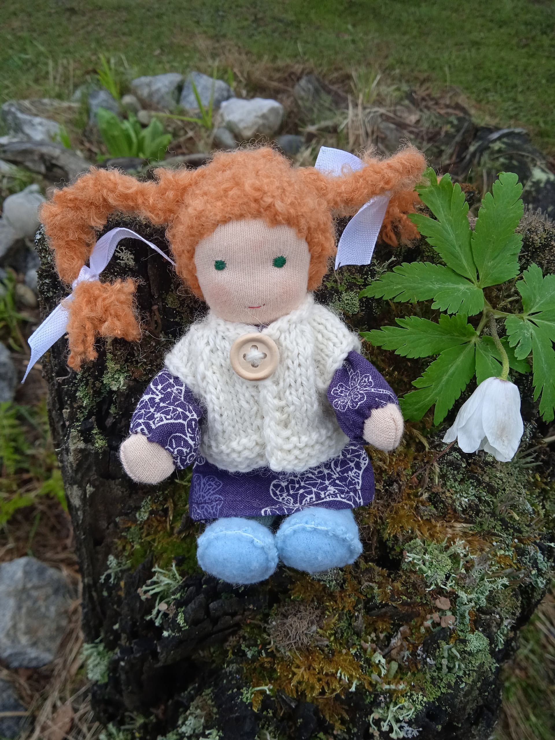 Проволочный каркас придаёт кукле особую подвижность: можно менять положение ручек и ножек, придавая игрушке разные позы. Это делает куклу идеальной для сюжетных игр и кукольных спектаклей. Кукла выполнена из натуральных материалов: хлопковый кукольный трикотаж «Белый ангел», 100% овечья шерсть и каркас из медной проволоки. Волосы сделаны из мягкой буклированной пряжи, их можно заплетать в разные прически. Основная одежда (штанишки, обувь, платье у куклы-девочки, рубашка у куклы-мальчика) пришиты, также по желанию можо добавлять сьемные элементы: кофточки, фартуки, юбки, шапочки.