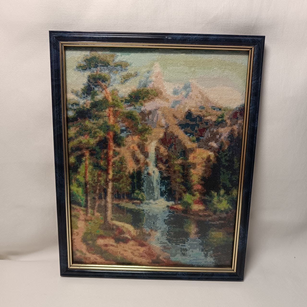 Вода, струящаяся с вершин гор, олицетворят достаток и благополучие. Картина размером 23х29 выполнена в технике счетный крест, может стать отличным подарком к любому празднику, и выпишется в любой интерьер.