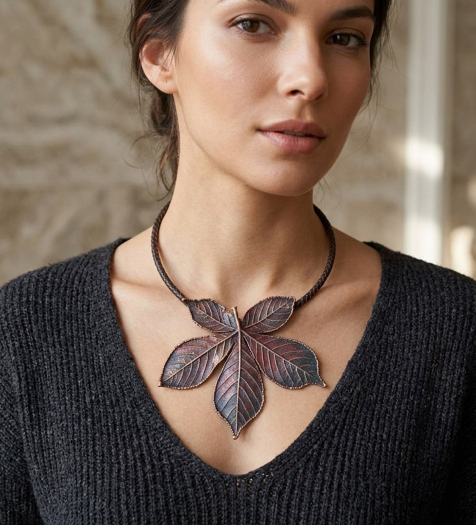 Уникальность: Каждое украшение индивидуально — даже если серия состоит из нескольких экземпляров, незначительные различия в текстуре и форме листа делают каждую подвеску единственной в своём роде. Это не просто аксессуар, а маленький артефакт, соединяющий в себе силу природы и творческое видение мастера.