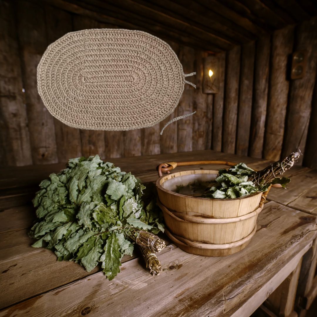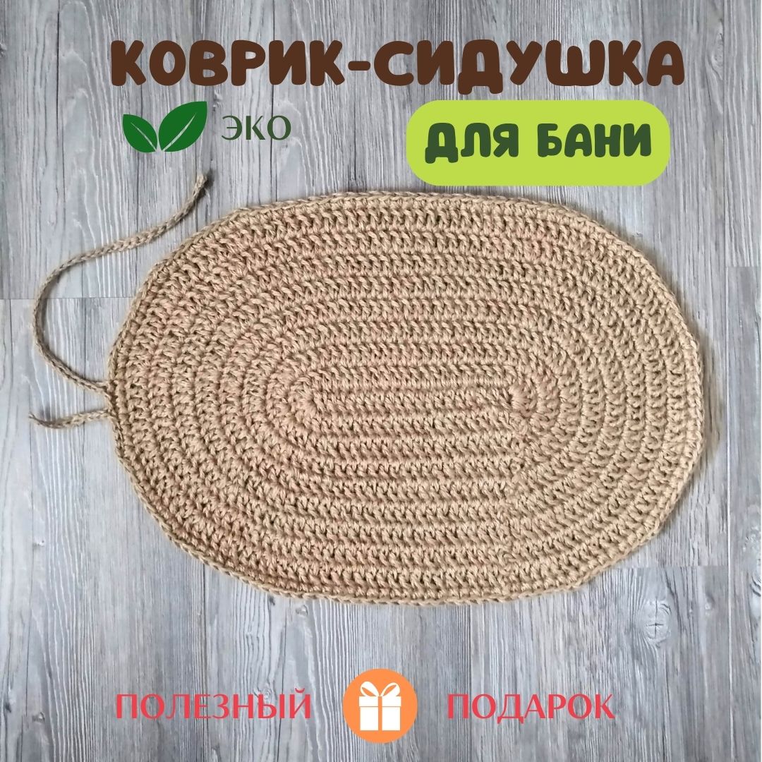 Коврик подстилка для бани и сауны из джута 55*40 см ручной работы связан крючком.