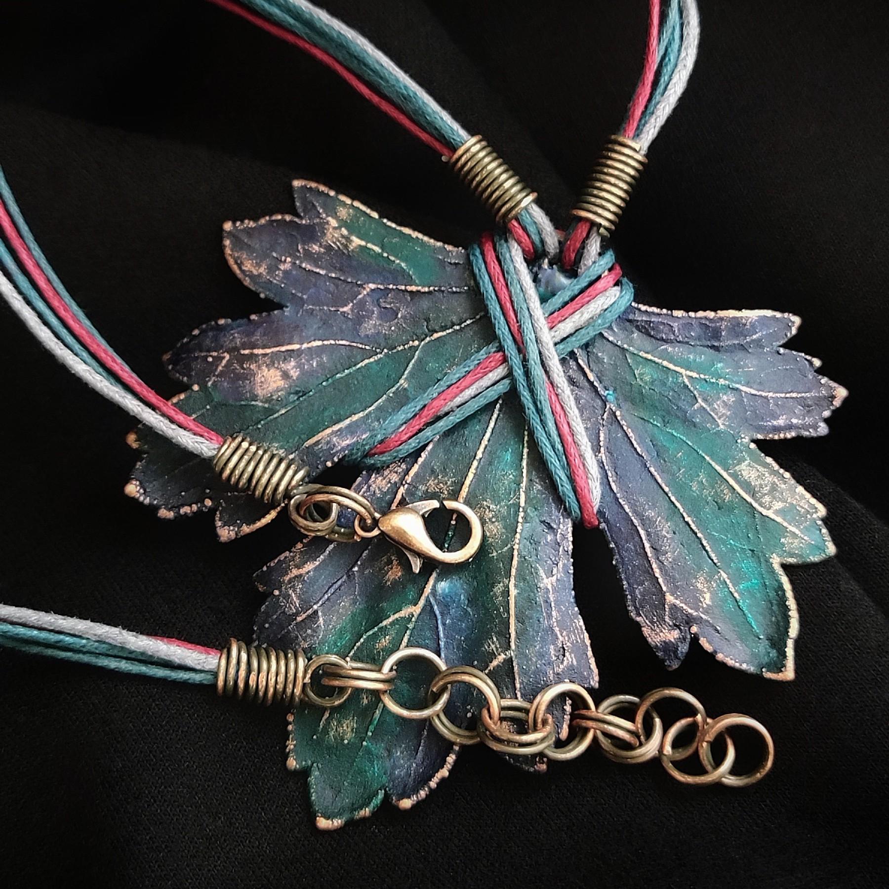 Гальванопластика — это не просто техника, это настоящее искусство создания уникальных украшений с невероятной точностью исполнения.Изделия созданные в этой технике — это создание точной копии предмета, путём осаждения на нём частичек меди, металла, такого благодатного для человека.Она важный микроэлемент для человека, участвующий в обменных процессах, синтезе гемоглобина, работе центральной нервной системы, формировании костных структур, поддержании иммунного ответа.Так что носить её даже полезно для здоровья.Эти украшения — уникальны, они живые, они словно живой лист в твоих ладонях, застывший на мгновение, и останавливающий время, да бы ещё немного продлить жизнь и запечатлеть эту красоту.Красоту — во всём! В текстуре, в прожилках, в раскрасе, что придаёт Мастер, в фактуре. Бесподобно и неповторимо здесь всё !