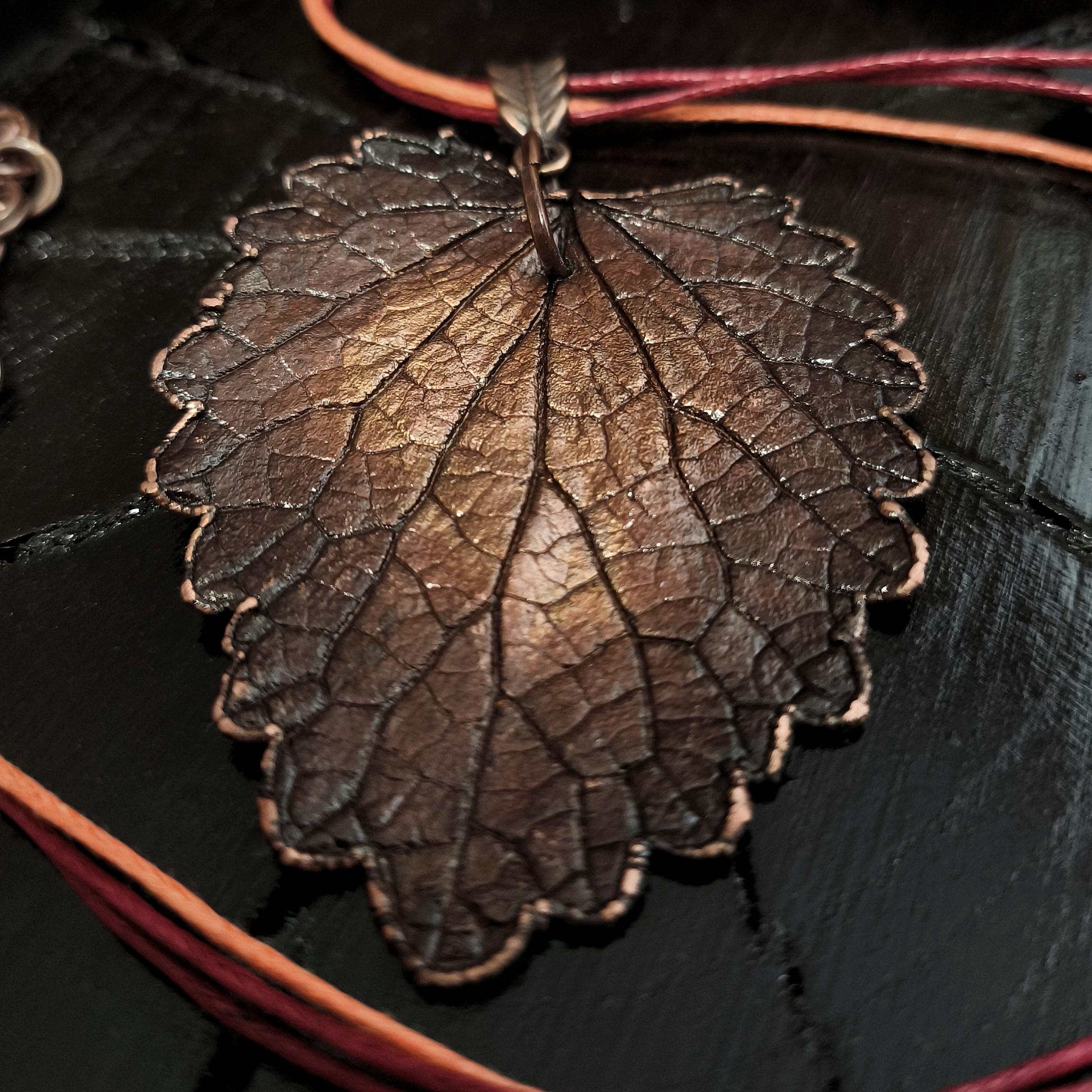 Гальванопластика — это не просто техника, это настоящее искусство создания уникальных украшений с невероятной точностью исполнения.Изделия созданные в этой технике — это создание точной копии предмета, путём осаждения на нём частичек меди, металла, такого благодатного для человека.Она важный микроэлемент для человека, участвующий в обменных процессах, синтезе гемоглобина, работе центральной нервной системы, формировании костных структур, поддержании иммунного ответа.Так что носить её даже полезно для здоровья.Эти украшения — уникальны, они живые, они словно живой лист в твоих ладонях, застывший на мгновение, и останавливающий время, да бы ещё немного продлить жизнь и запечатлеть эту красоту.Красоту — во всём! В текстуре, в прожилках, в раскрасе, что придаёт Мастер, в фактуре. Бесподобно и неповторимо здесь всё !