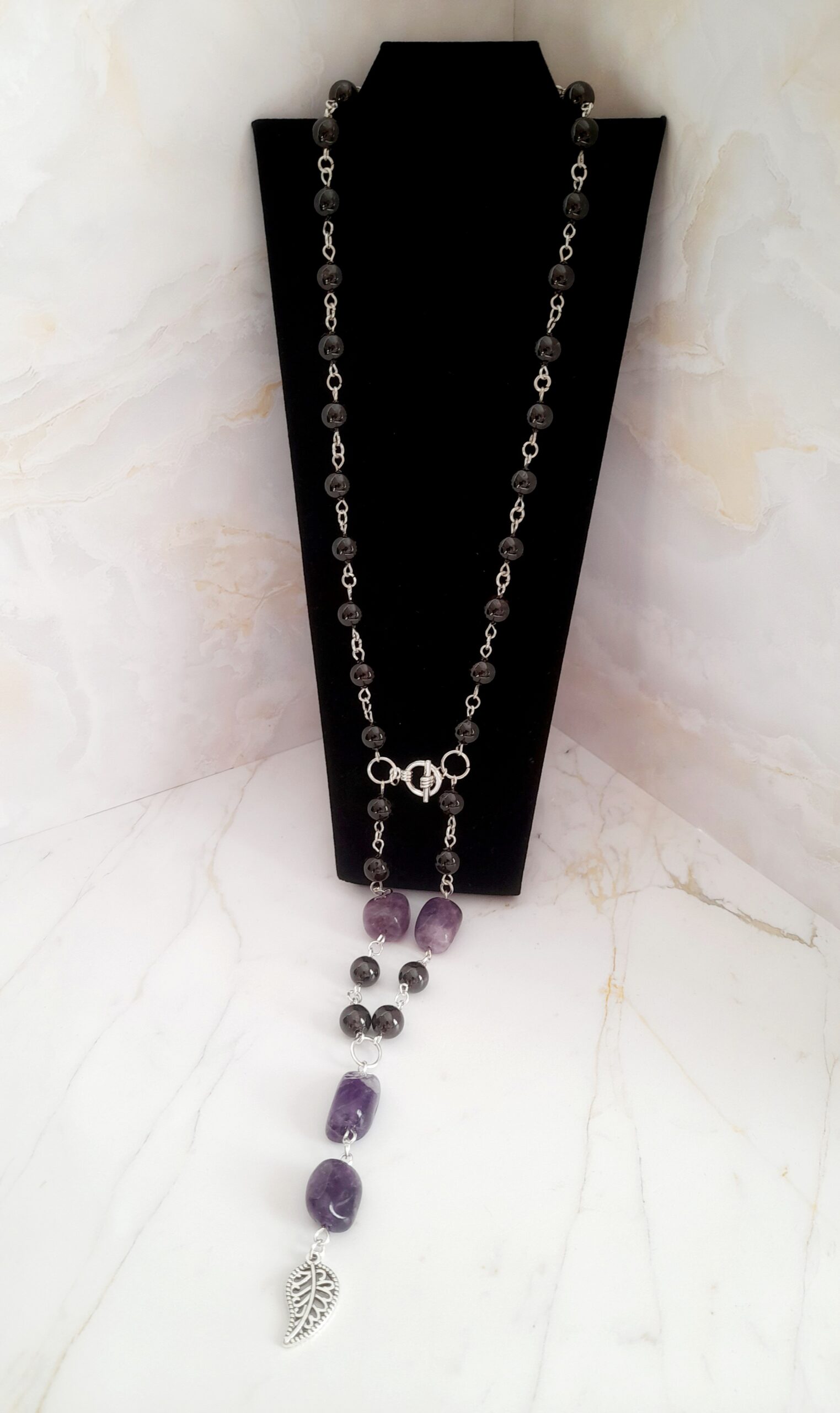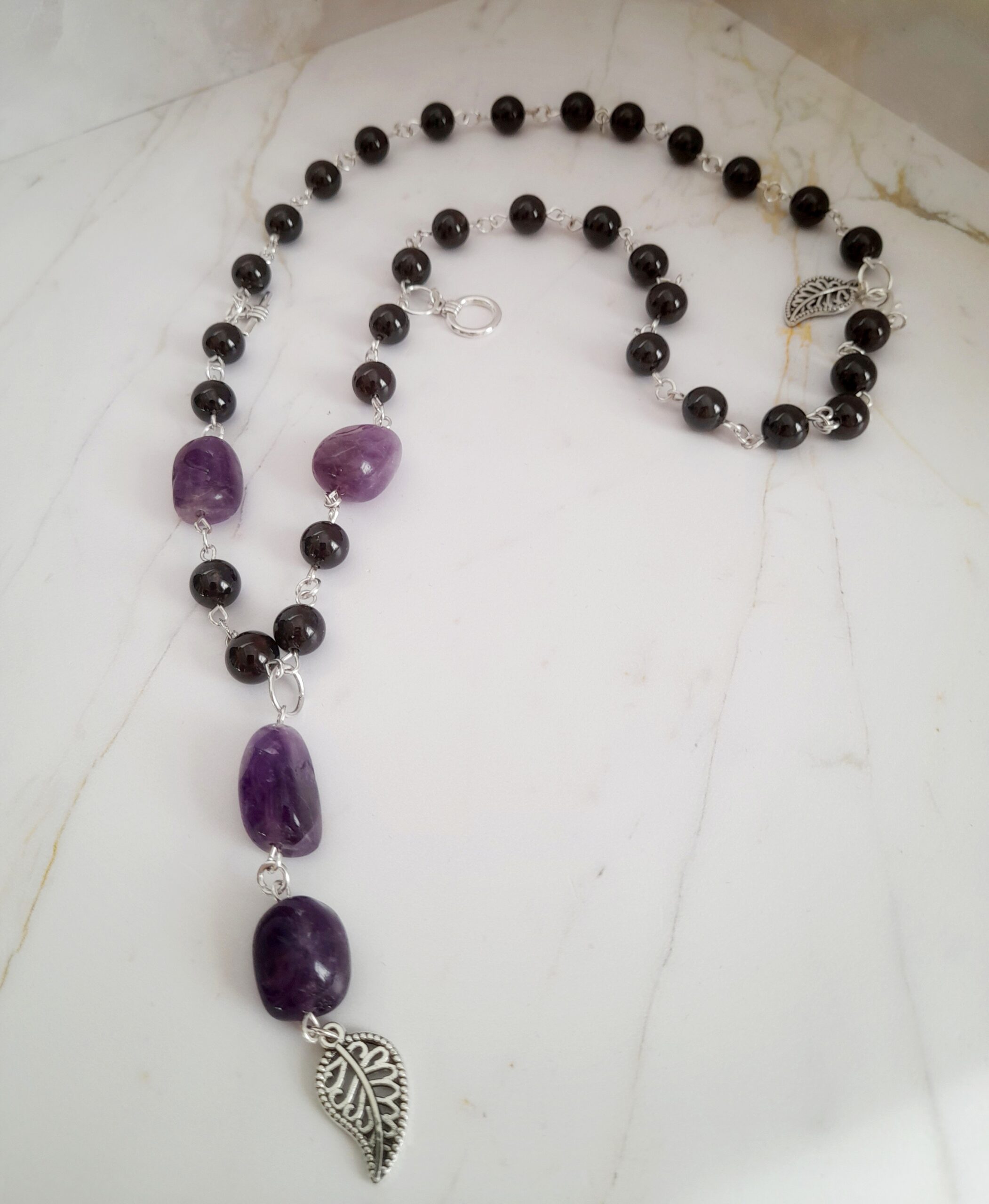 Колье-трансформер 3-в-1 с гранатом-альмандином и аметистом. Длина 38 см.