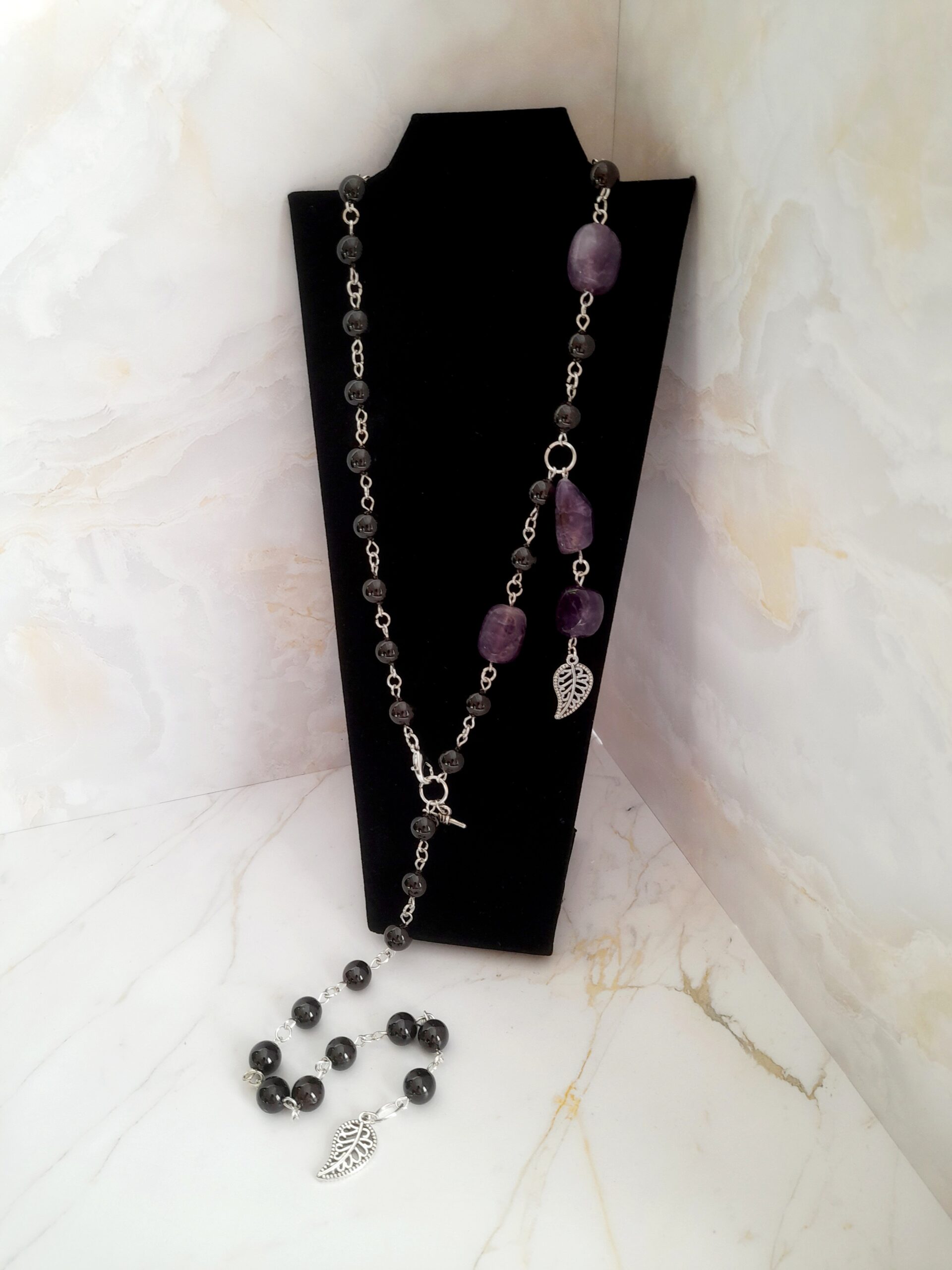 Колье-трансформер 3-в-1 с натуральными минералами: гранат-альмандин и аметист. Фурнитура под серебро. Длина 38 см.