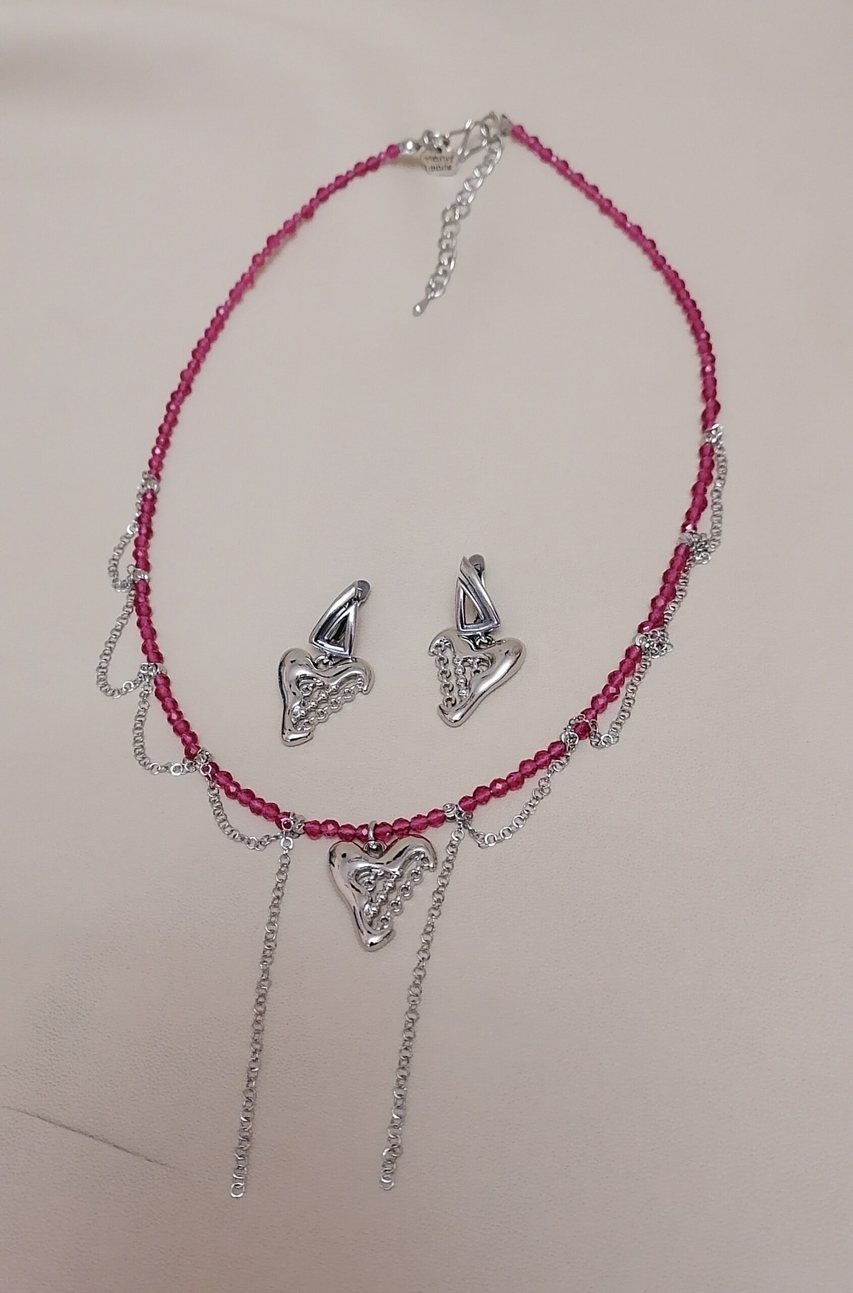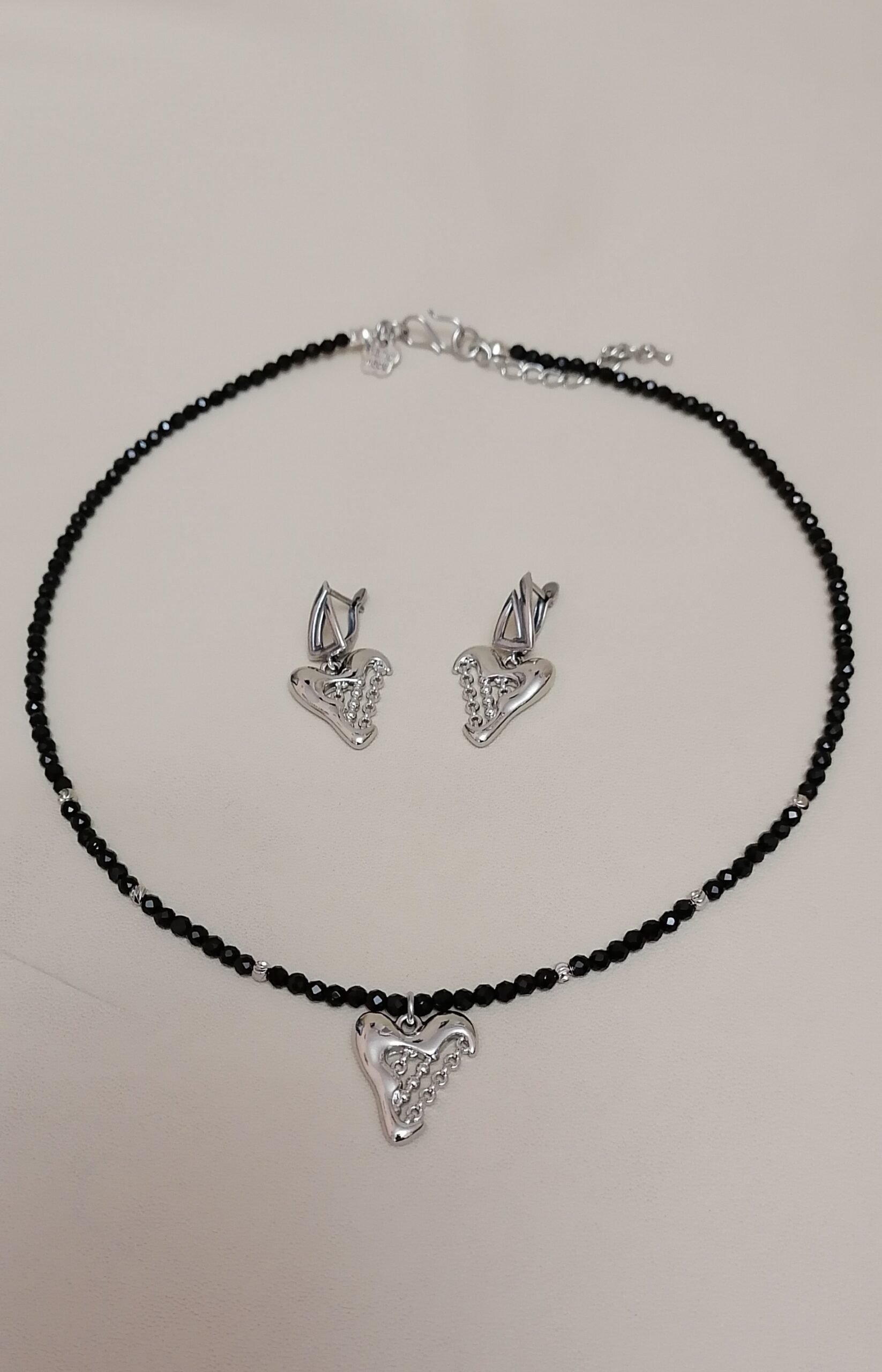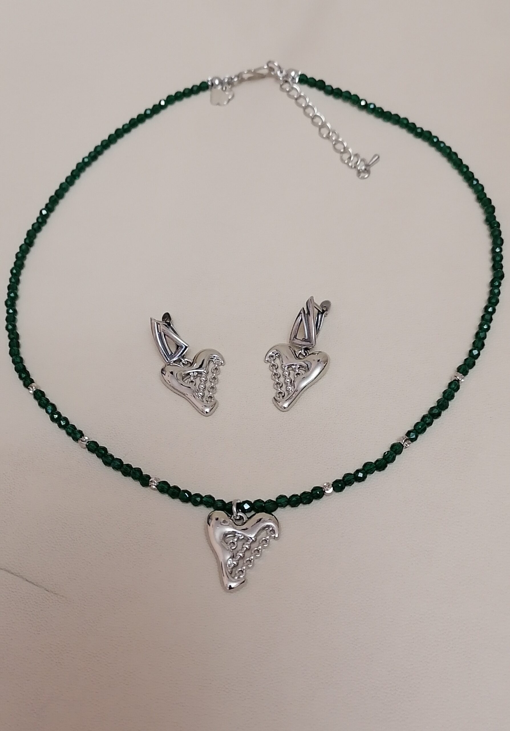 Каждое колье дополнено серебристой подвеской в форме сердца, скованного цепями, что придает украшению современный вид п делает его по настоящему особенным.