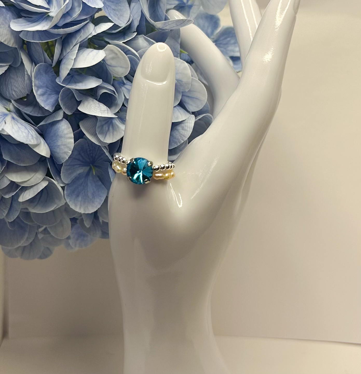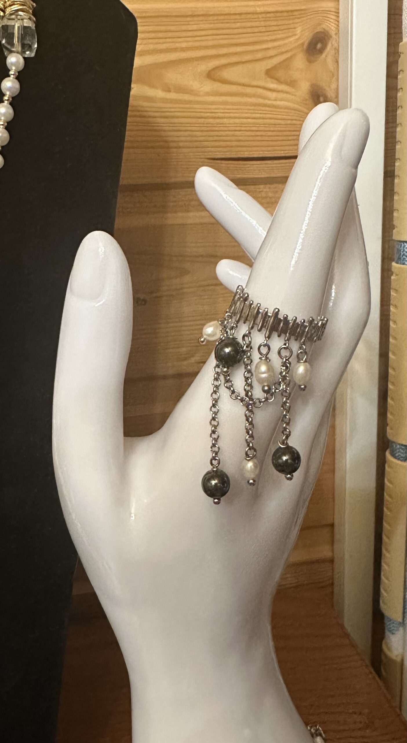 Кольца с натуральным жемчугом, стеклом, цепочками. На любой размер.