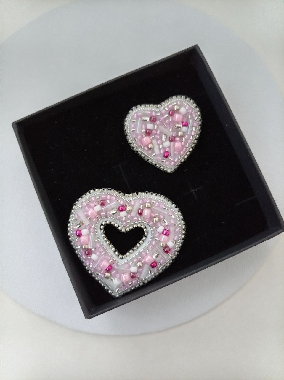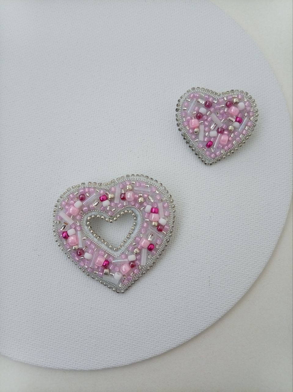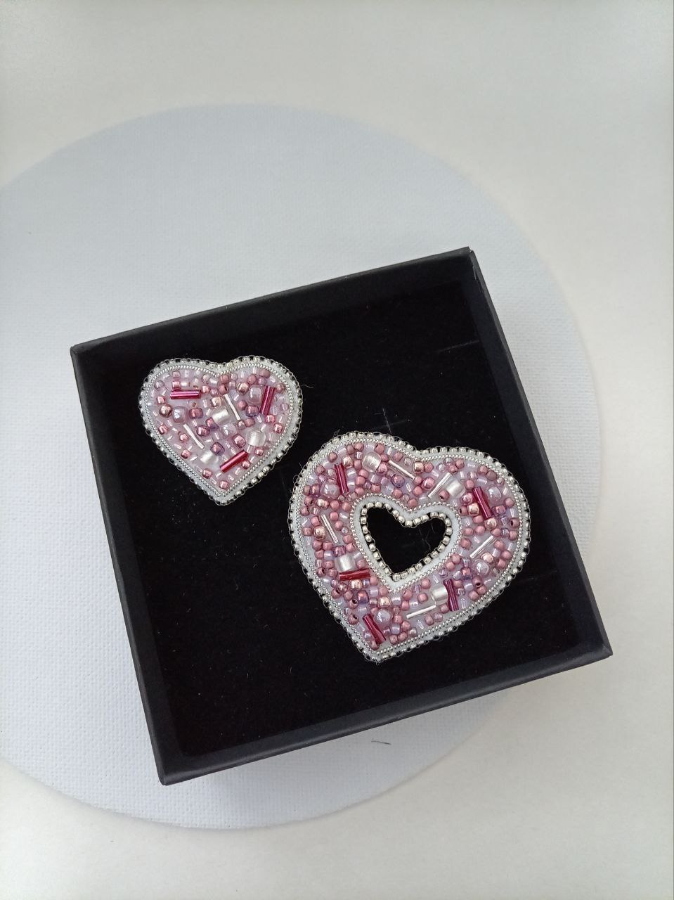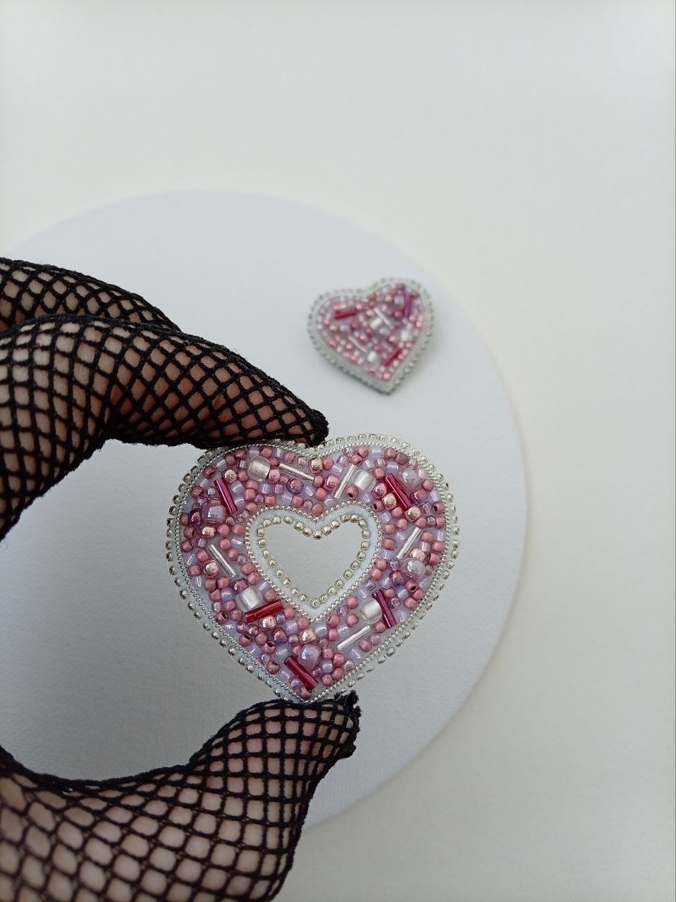 ♦ Две броши Валентинки, выполненные в едином стиле. Вышиты на фетре с использованием микса японского бисера. В наличии два комплекта: в розовом и сиреневом оттенках