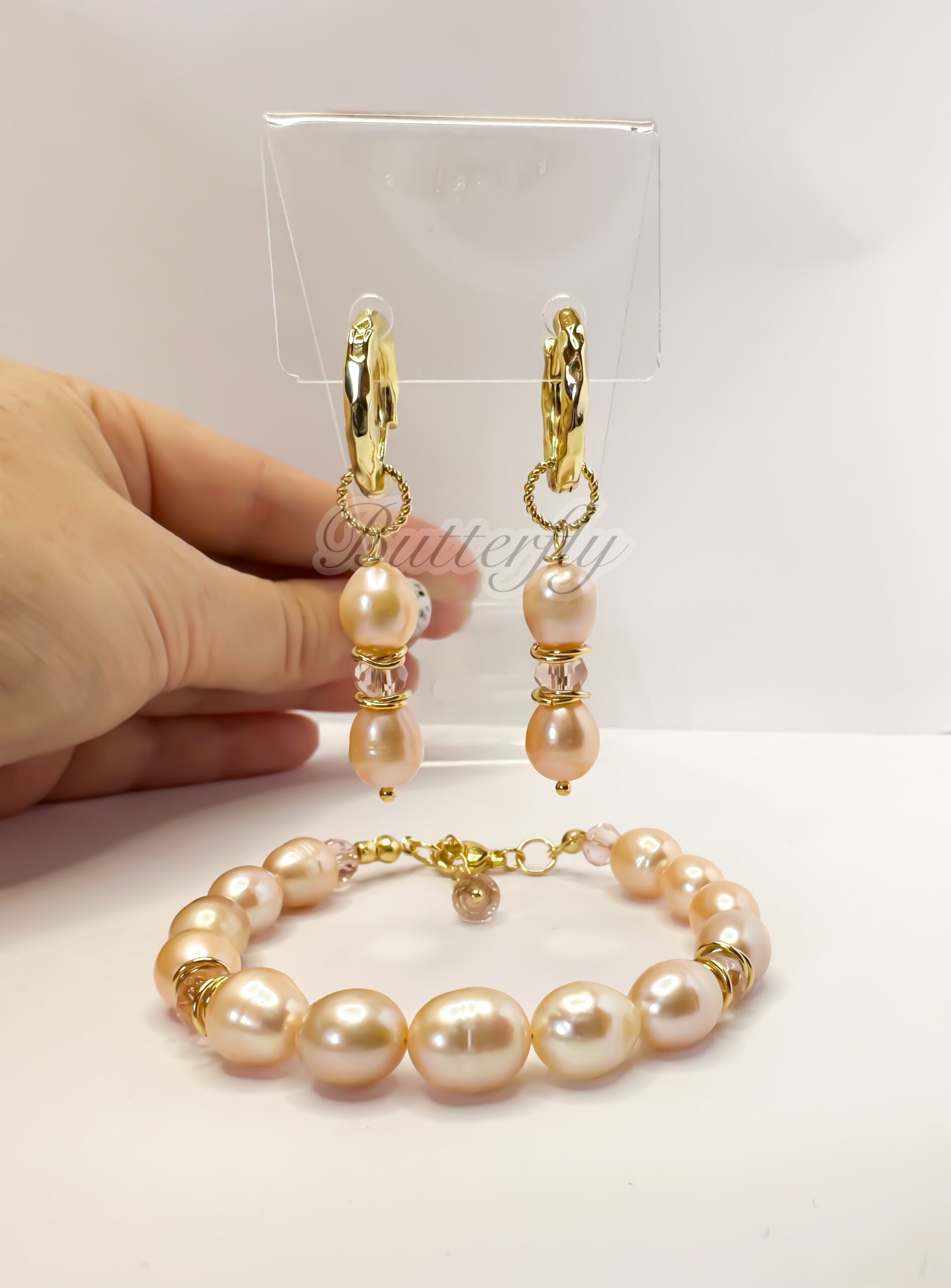 Браслет и серьги из натурального розового жемчуга с ювелирным стеклом. Браслет на запястье 16-17 см+3 см цепочка, фурнитура премиум класса. Комплект можно разделить.