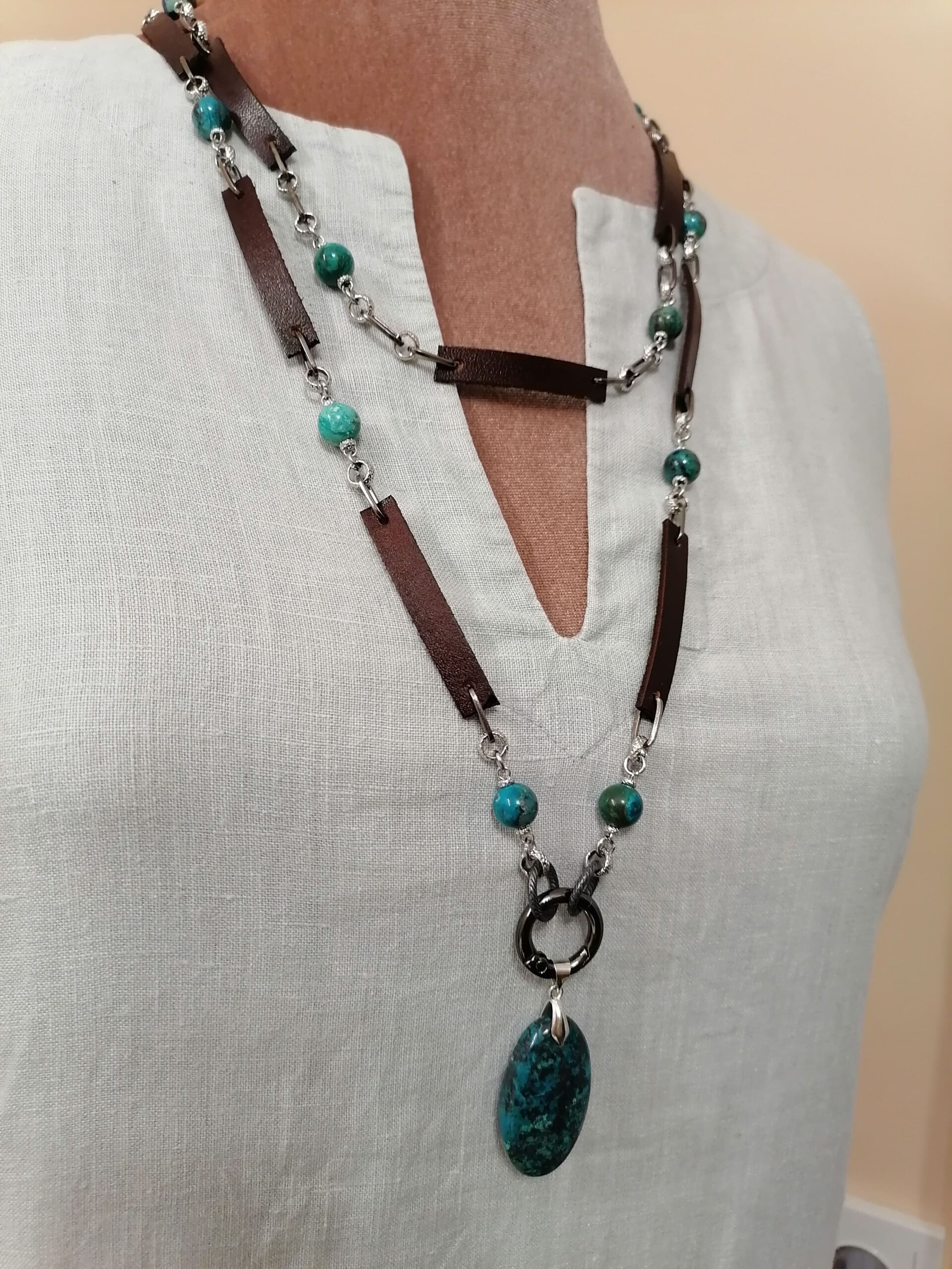 | Натуральная Кожа, Натуральные камни, Нержавеющая сталь, Хризоколла | |