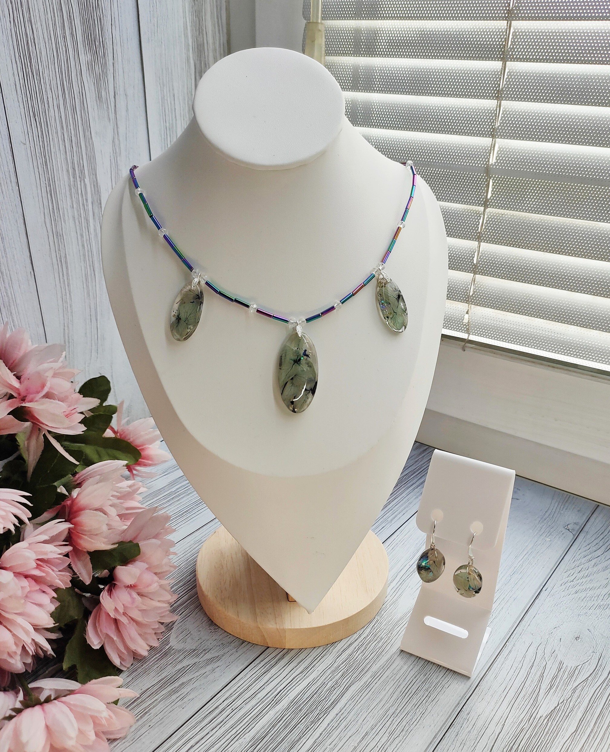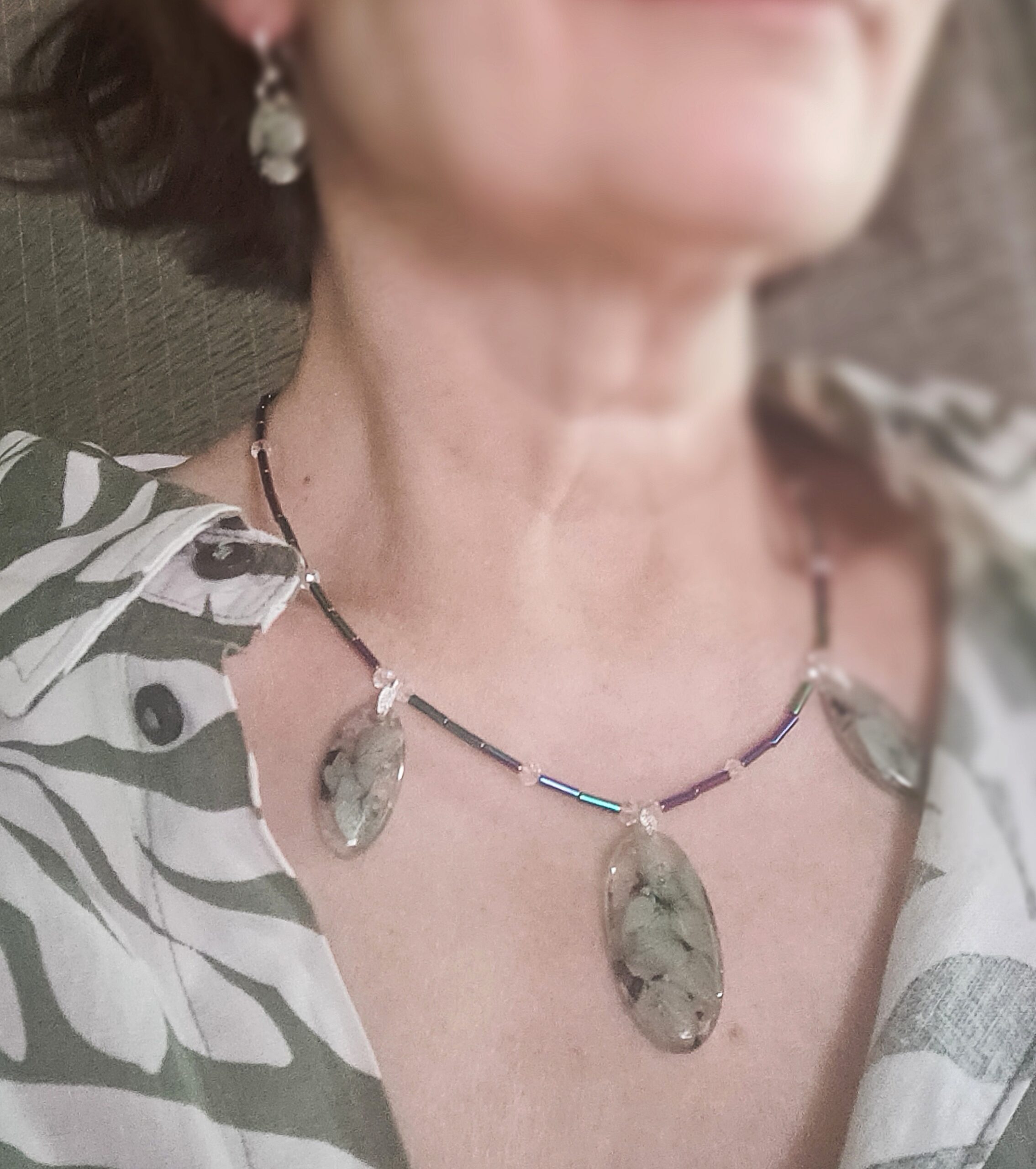 Состав ИзделияБусины стеклянные, гематит, сухоцветы, Травы, Эпоксидная смола