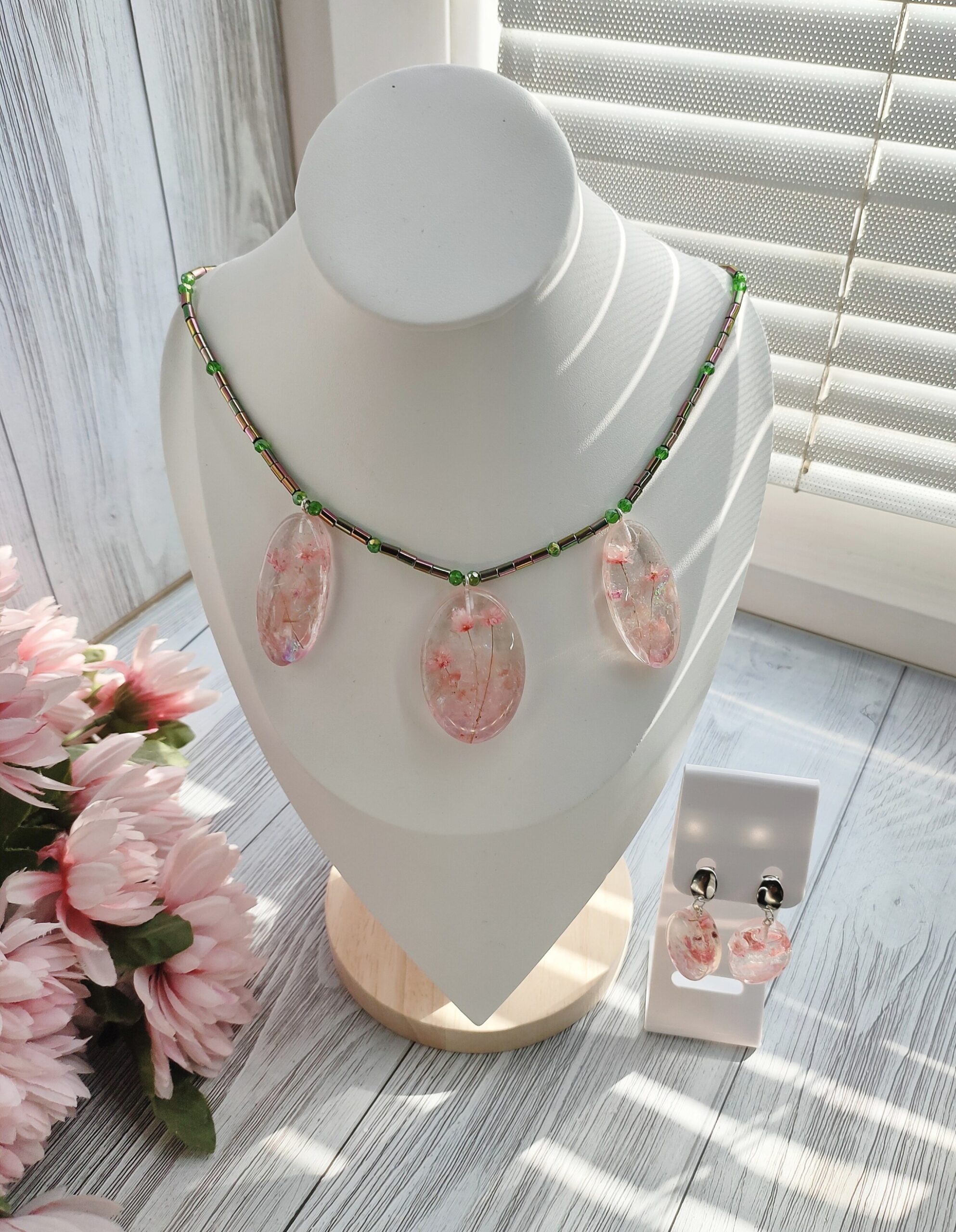 Комплект украшений из смолы с живыми цветами Гипсофилы