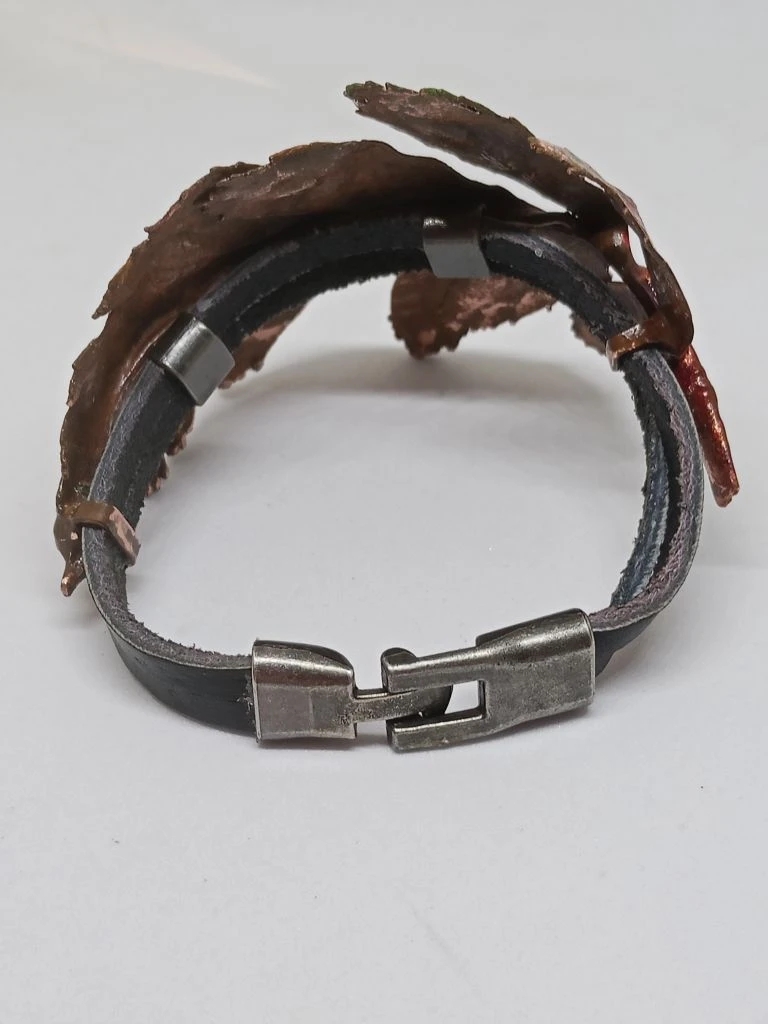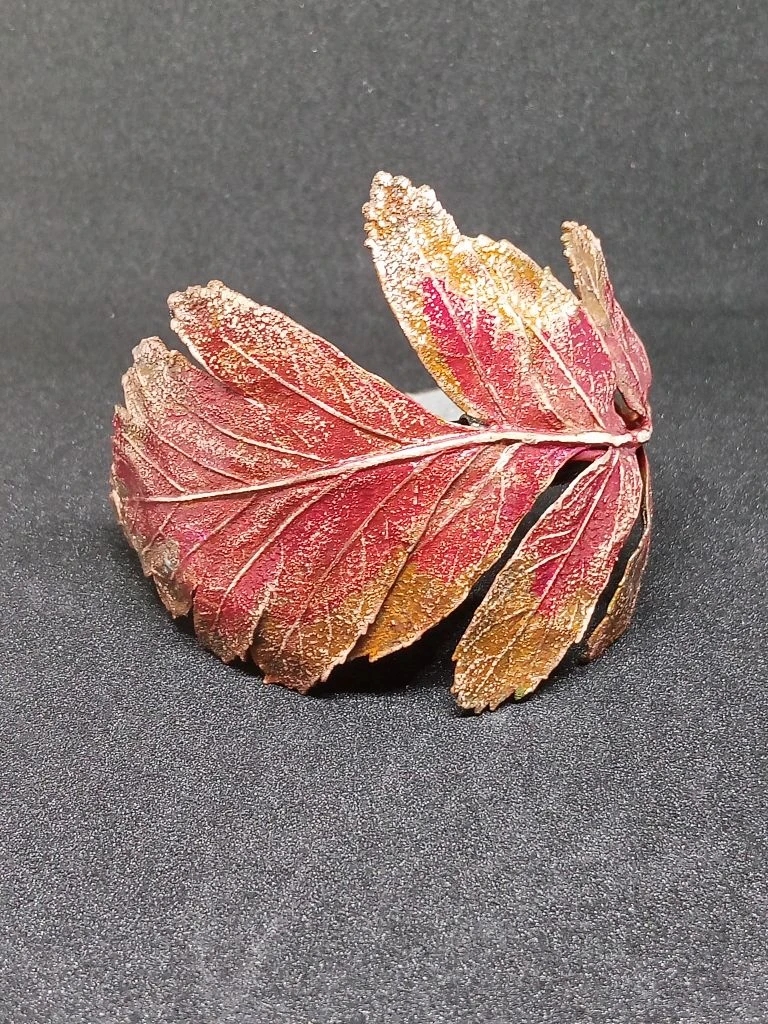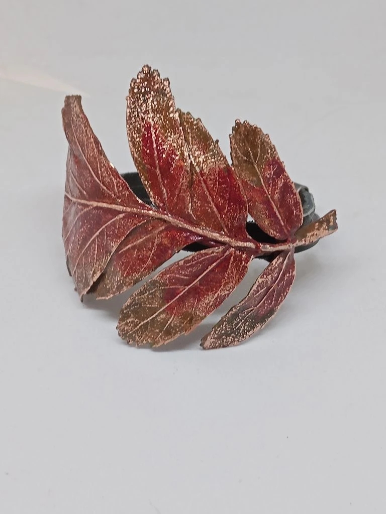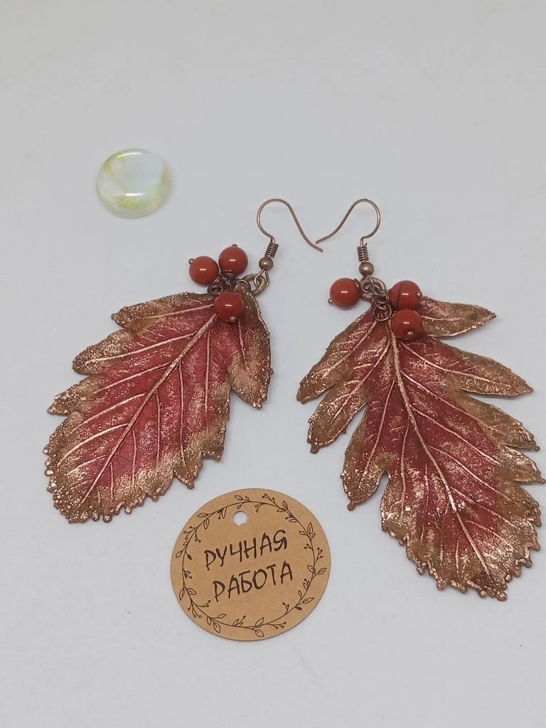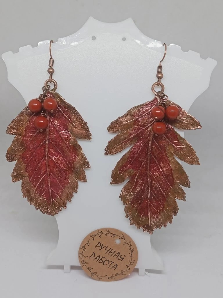 Комплект украшений изготовлен из листьев скандинавской рябины и дополнен бусинами яшмы.